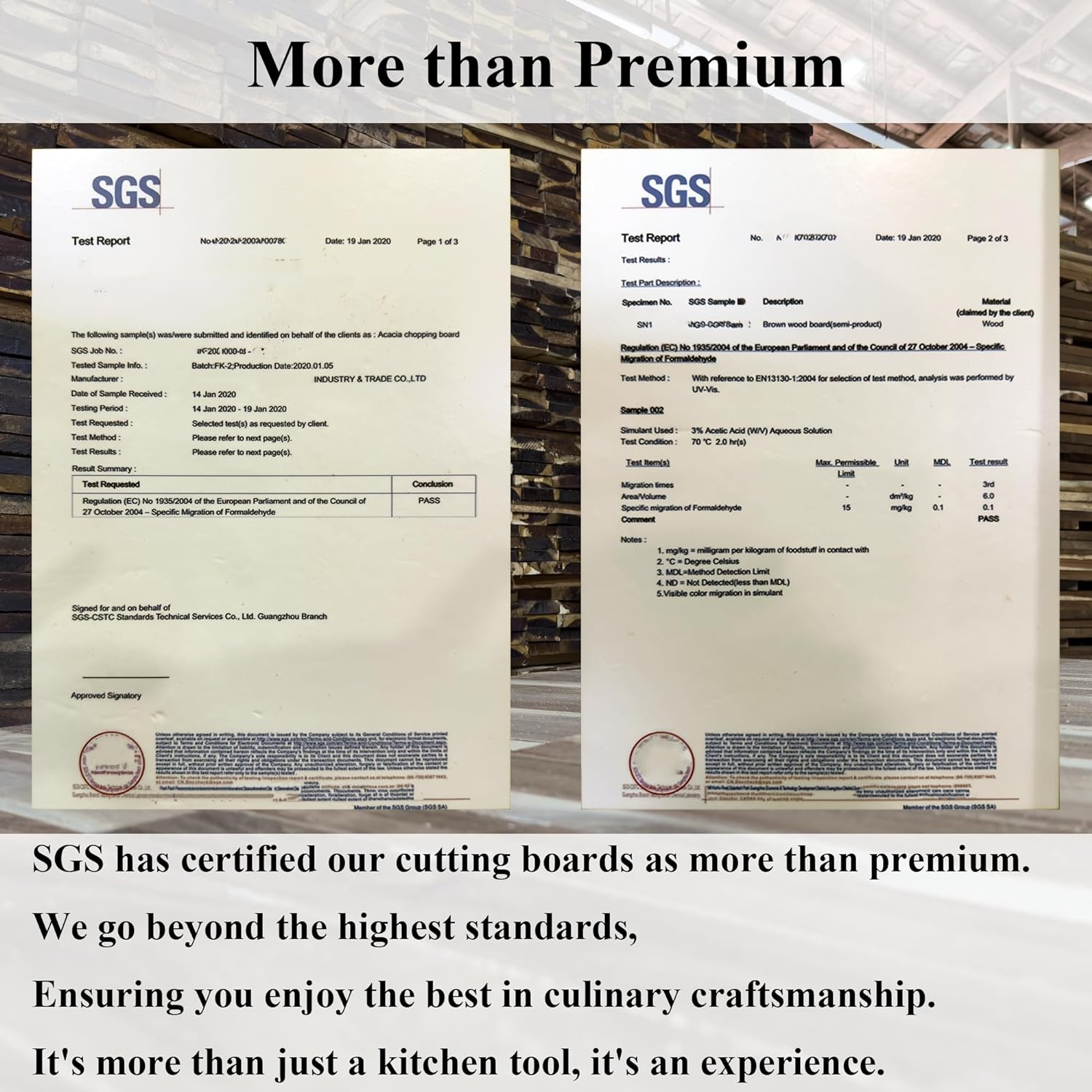 - 【Premium Acacia Wood】: Expertly hewn from solid Acacia wood, prized for its exceptional stability and resilience. This cutting board is designed to withstand the rigors of everyday use without leaving unsightly scars, ensuring a durable and safe platform for your culinary endeavors. Its natural texture provides excellent friction, preventing slipping and sliding during food preparation.