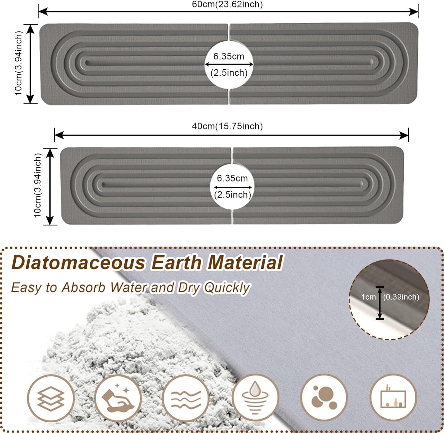Faucet Mat for Kitchen Sink, Diatomite Super Absorbent Fast Drying Stone Sink Tray for Bathroom Kitchen Sink Splash Guard(Square Dark Grey,23.6x3.9in)
