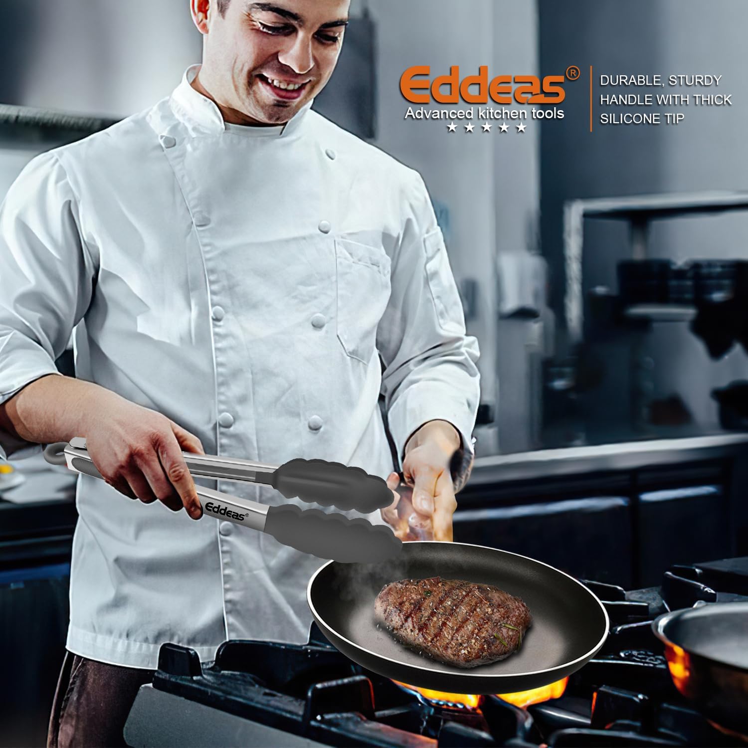 - FOOD GRADE MATERIALS - Eddeas tongs for cooking featuring a food grade silicone head, the tongs are gentle on your nonstick cookware so you can worry less about scratching and wear and tear, silicone is heat resistant up to 600 degrees Fahrenheit, making it a great option for nearly any cooking task. Set of 3 - 7", 9" & 12 inch Everything you need on a daily basis
