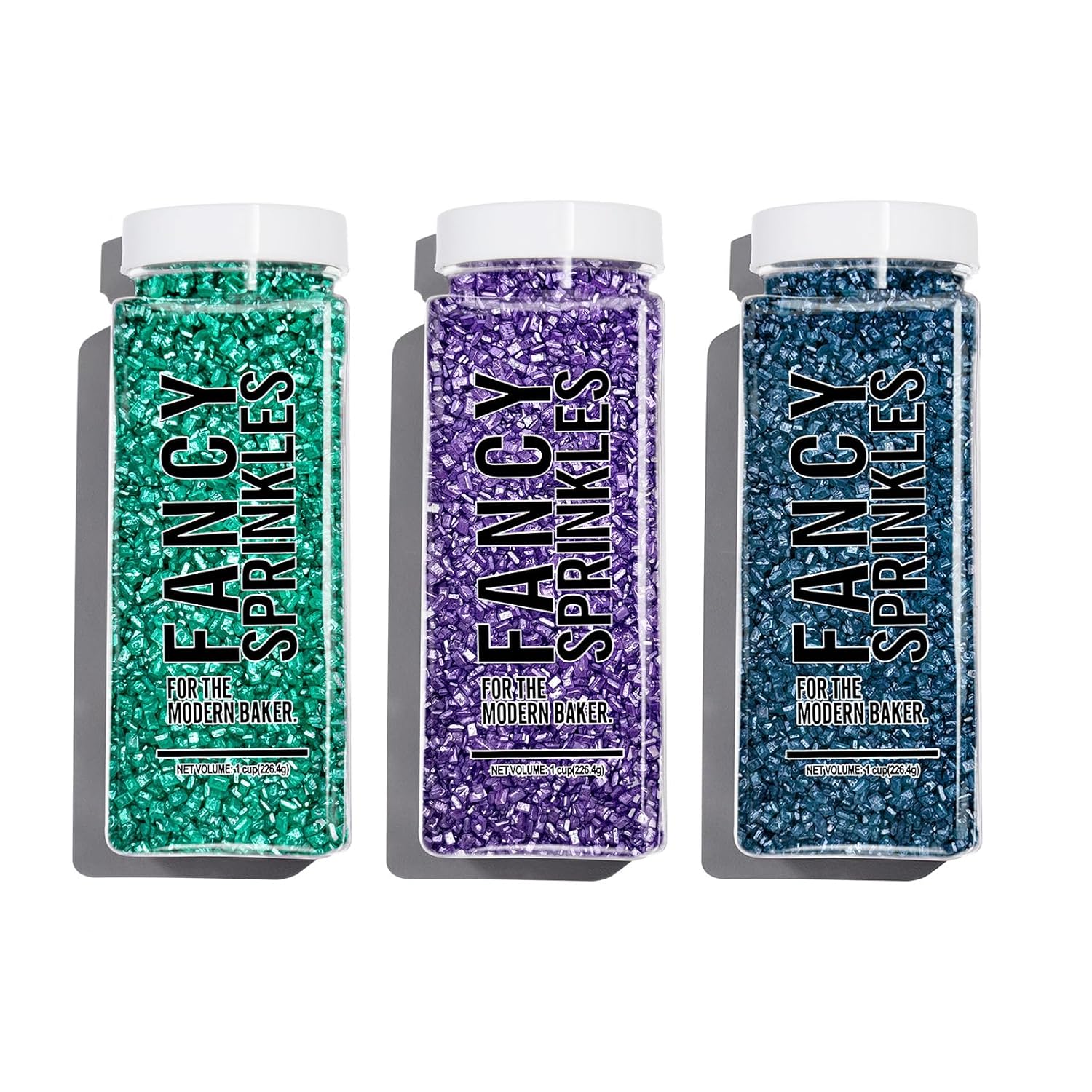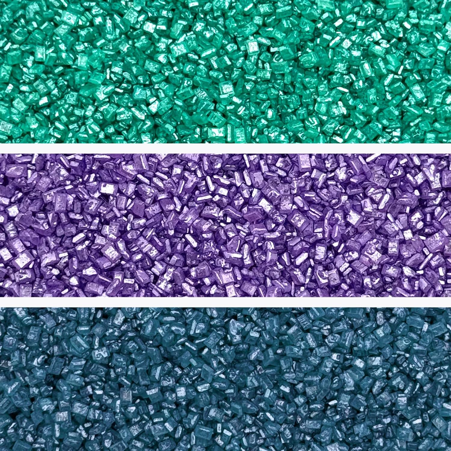 Fancy Sprinkles Sugar Nest Set, Pearlescent, Sparkly Sugar Crystals (Amethyst Purple, Emerald Green and Kyanite Blue) (8 OZ)