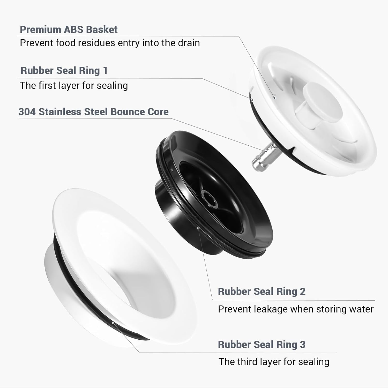 - 【Universal Design Compatibility】Designed to fit most US standard 3.5-inch garbage disposal metal collars, this garbage disposal flange strainer and stopper seamlessly integrates with your existing garbage disposal.