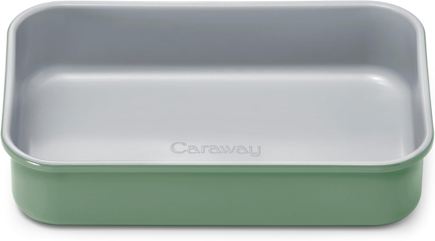 Caraway Nonstick 9” x 6.5” Small Rectangle Baking Pan – Non-Toxic, PTFE & PFOA Free – Aluminized Steel Core – Deep Ceramic Baking Pan for Casseroles, Lasagna & More - Sage