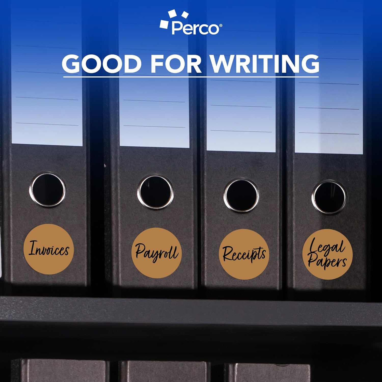 Perco Kraft Brown 3-Inch Round Circle Dot Sticker Labels - Multi-Roll Pack (3 Rolls, 500 Labels Each) - Permanent Adhesive, Natural, Cardboard-Like Surface - Perforated for Easy Use - Made in USA