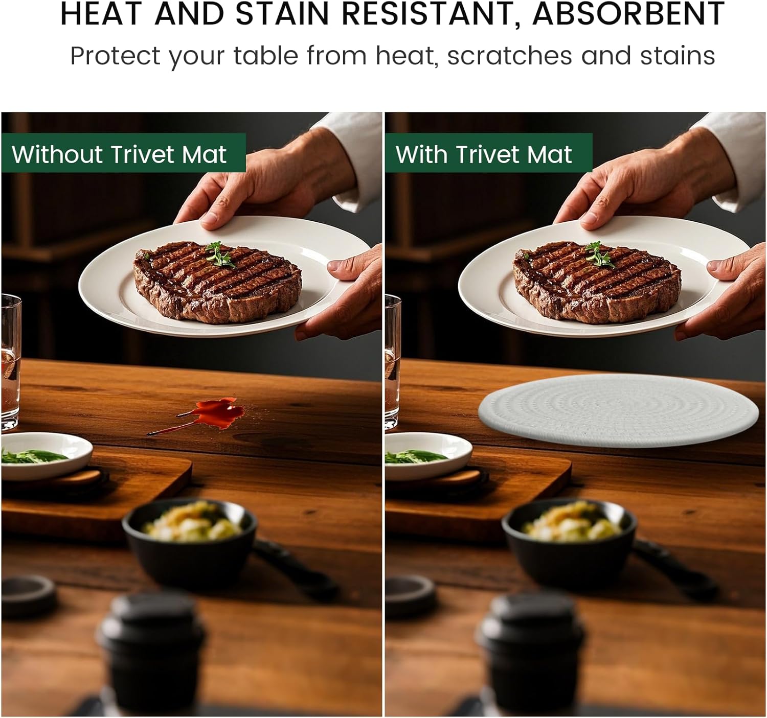 - Super Absorbent & Easy to Clean: These thick woven cotton trivets have better heat absorption, liquid absorption and better protection of the wood surface from water rings, stains and potential damage. Support both machine wash and hand wash, keeping your pad set fresh and ready for reuse