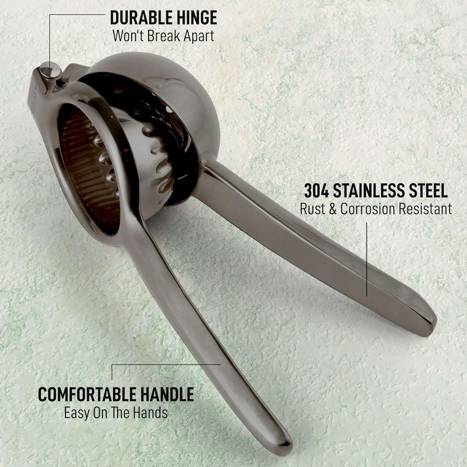 - MADE WITH HIGH QUALITY STAINLESS STEEL: This Easy-To-Use and Easy-To-Store Lemon Squeezer is built like a tank. No more bulky hard-to-clean juicers crowding the decor of your home bar or kitchen this citrus press has you covered. Whether youβre a chef or simply want a pampered squeeze you can be drinking lemonade in a just seconds.