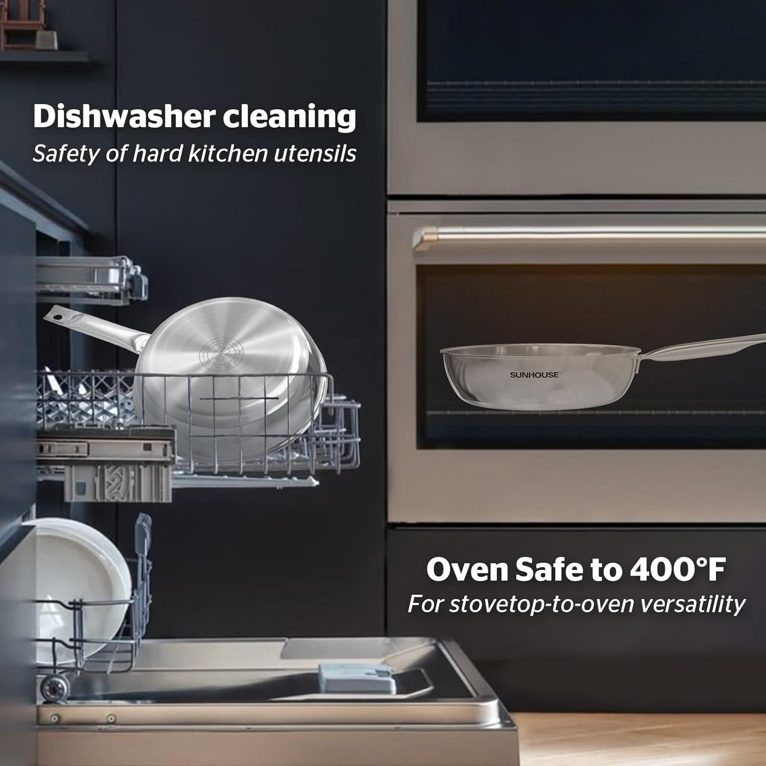 - Premium 18/10 Stainless Steel – Crafted from high-quality 18/10 stainless steel, Sunhouse Frying Pan is built to resist rust, corrosion, and staining, delivering long-term durability and a sleek, modern look for your kitchen.
