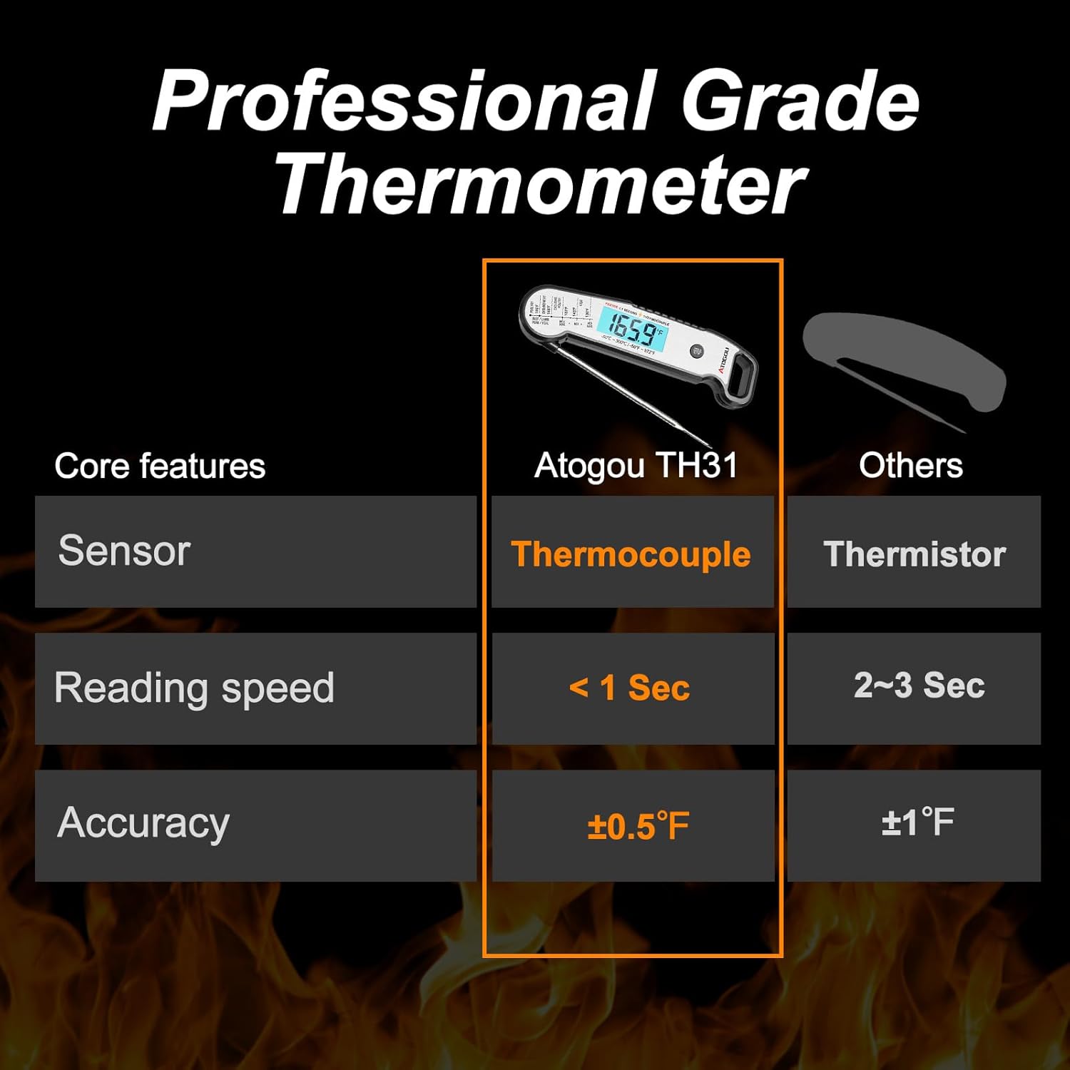 - Special Feature : One Second Reading Speed, Professional Thermocouple Sensor, ±0.5℉ Accuracy