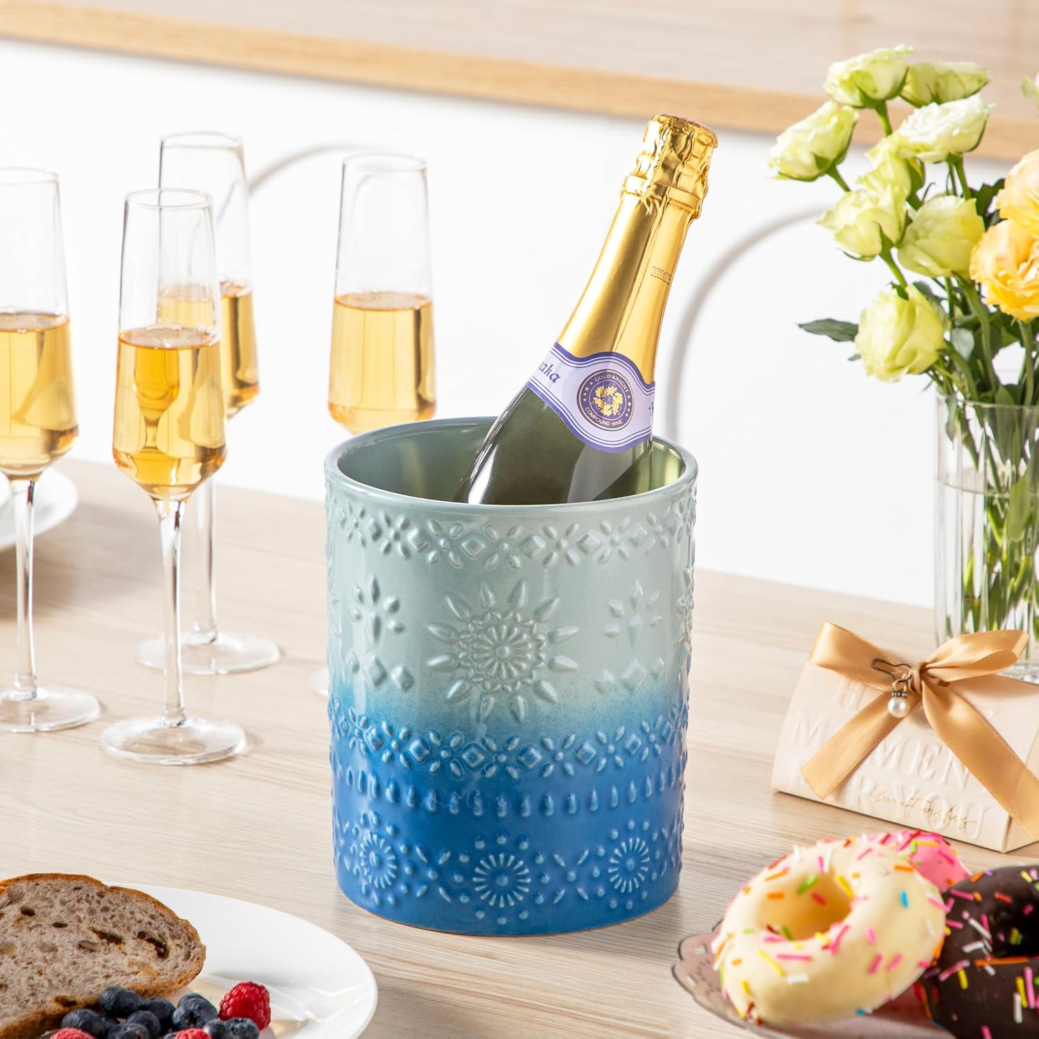 - 【MULTIPLE FUNCTION& WONDERFUL GIFT】This kitchen utensil holder is not only can be used to store kitchen utensils such as spatulas, ladles, peelers, knives, whisks, can openers, but also can be used as a cute planter pot, vase, wine freezer. And it is suitable for weddings or housewarming gifts.