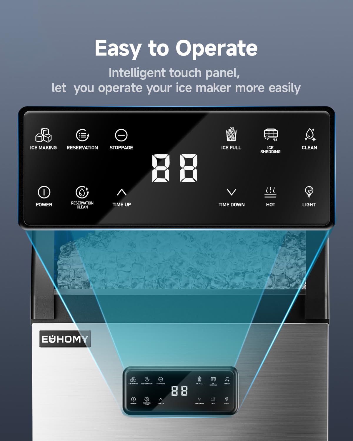 EUHOMY Commercial Ice Maker,100lbs/24H,Stainless Steel Under Counter Ice Machine with Water Filter,33lbs Storage Capacity, 45 Cubes in 8-12 Mins, Freestanding Ice Machine for Home/Bar/Cafe/Restaurant