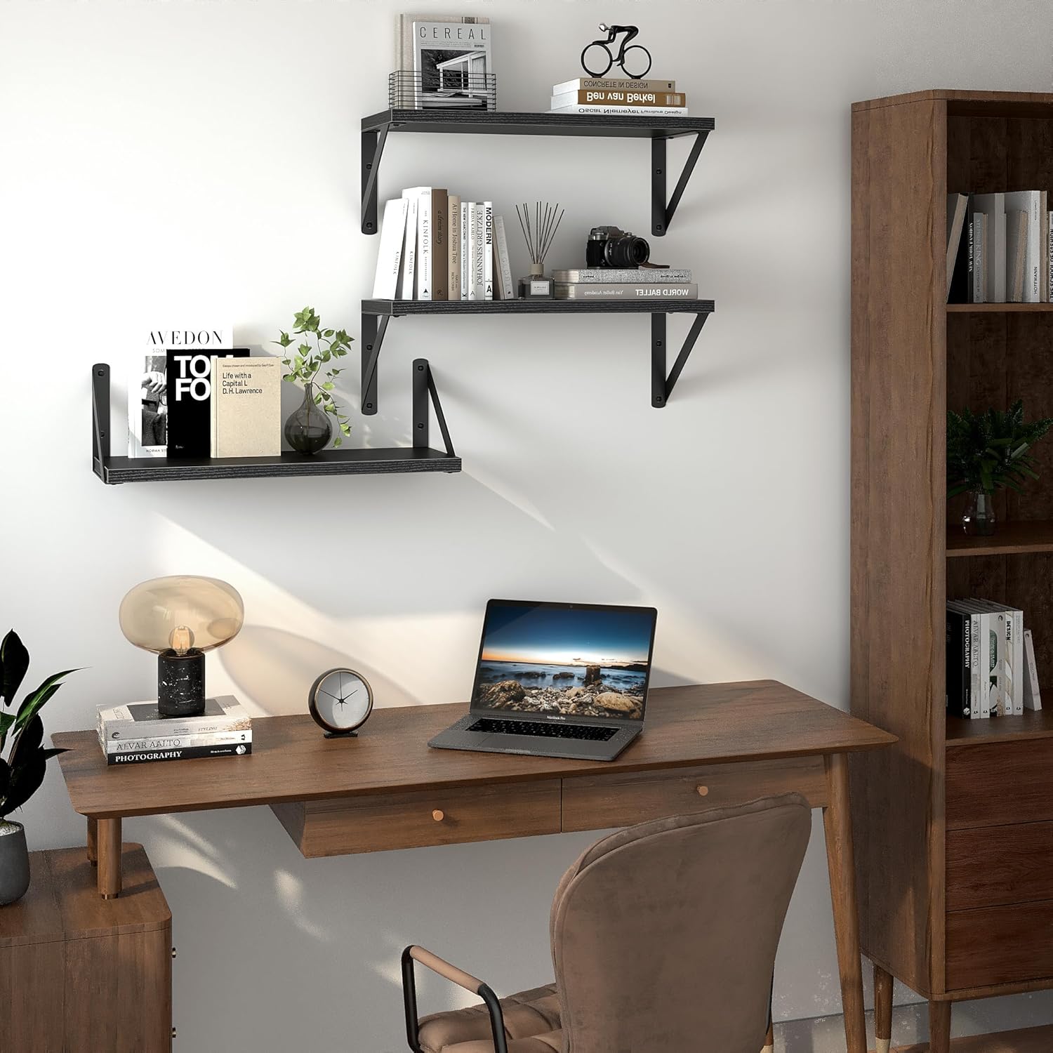 - 【STURDY & DURABLE】Each wood floating shelves is made of 0.6-inch thick natural wood planks and powder coated steel brackets for durability. The triangular metal brackets are even stronger and can hold up to 40 pounds