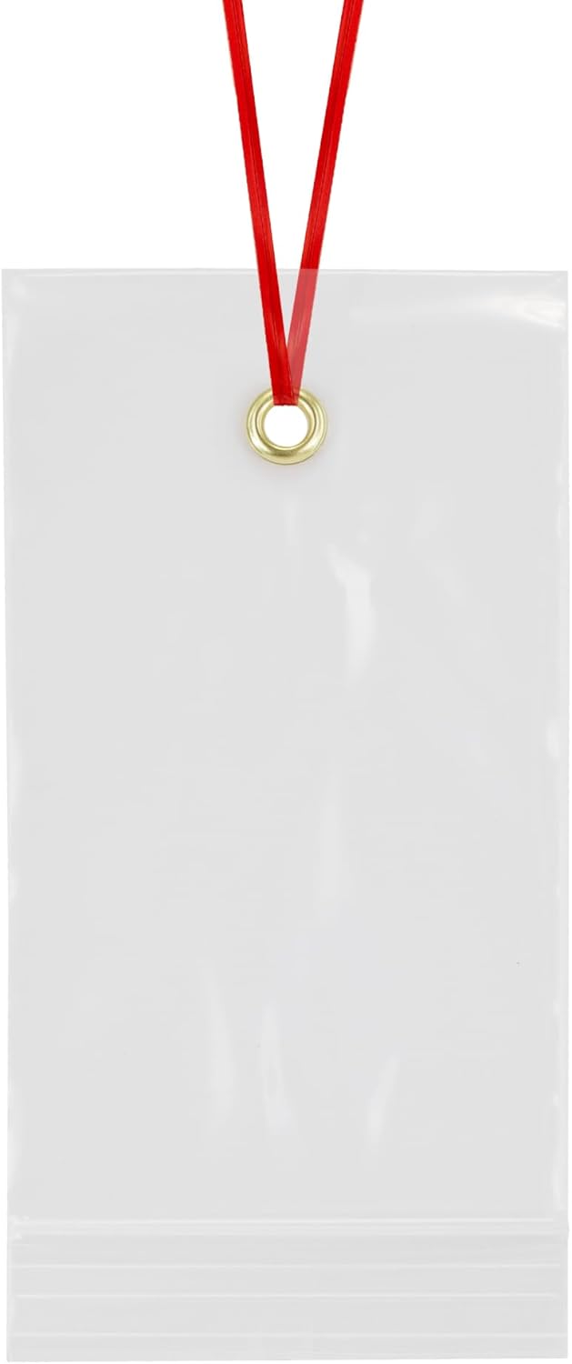 GPI - 3.5" x 6" Reclosable Zip Bags with Bottom Hang-hole & Pre-inserted 12" Twist-tie. 4 Mil Heavy-duty Resealable Zipper Baggy with Grommet/Metal Eyelet for Hanging (Insert Size 3x4.5) 100 Pack