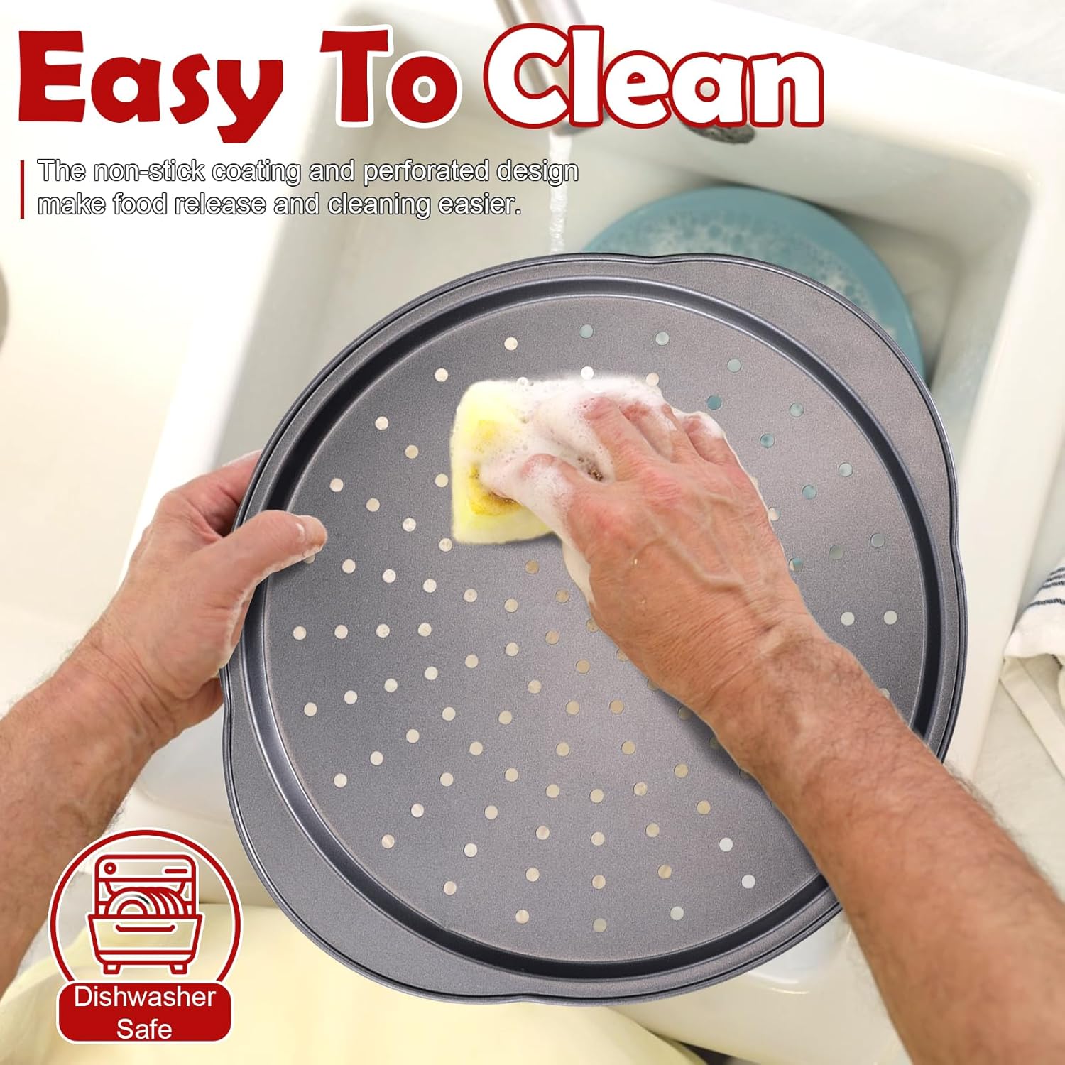 - 【Non-Stick Coating】 The pizza pan is covered with a long-lasting non-stick coating that makes food release and cleanup a snap. This pizza pan is as good as new with a simple hand wash! The pizza pan is also dishwasher safe, saving your valuable time