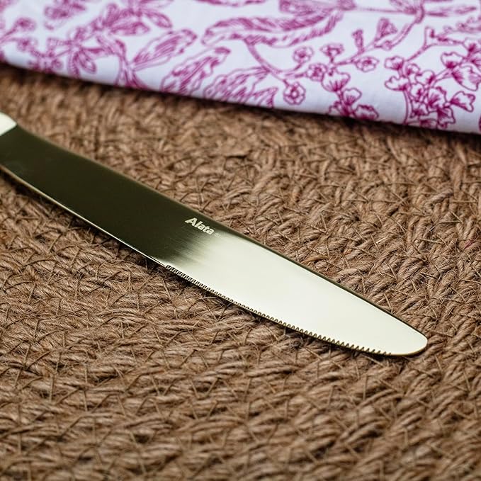 Alata Kate Champagne Gold Mirror 40-Piece Silverware Set,Service for 8,Stainless Steel Flatware Set,Mirror Cutlery Set,Dishwasher Safe