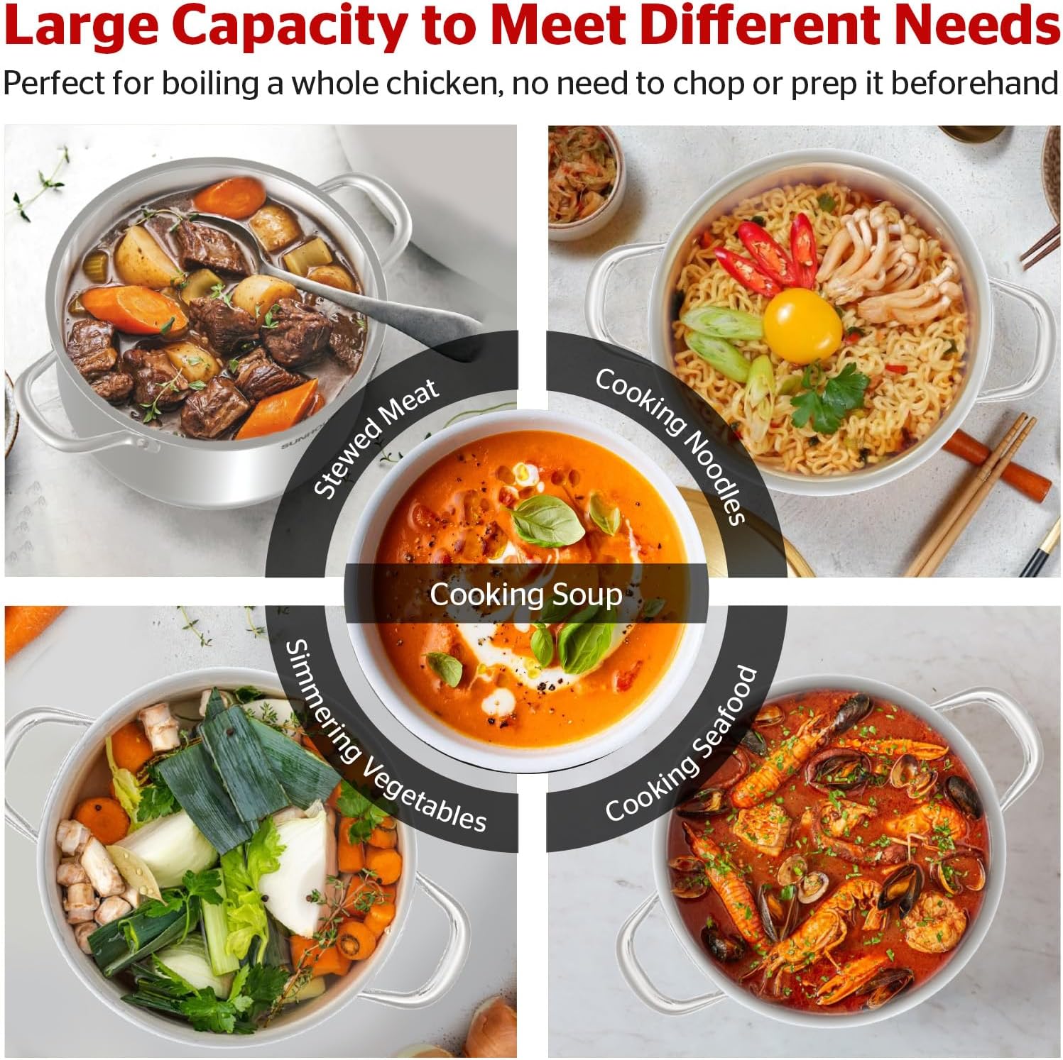 - [MULTIPURPOSE KITCHEN ESSENTIAL] – If you love cooking and entertaining, this 15.5-quart stockpot is perfect for preparing stocks, soups, stews, pasta, seafood, and even boiling multiple ears of corn at once. Additionally, it’s an excellent choice for canning and preserving.