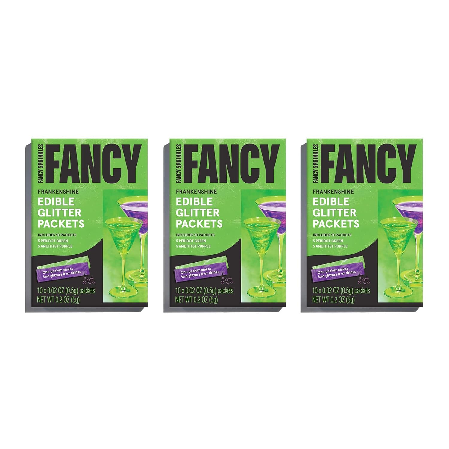 Fancy Sprinkles Limited Edition Halloween Frankenshine Edible Glitter Packets Portable & On-The-Go for Sparkling Drinks, Champagne, Cocktails, Wine, Beer, & more. (3 Pack)