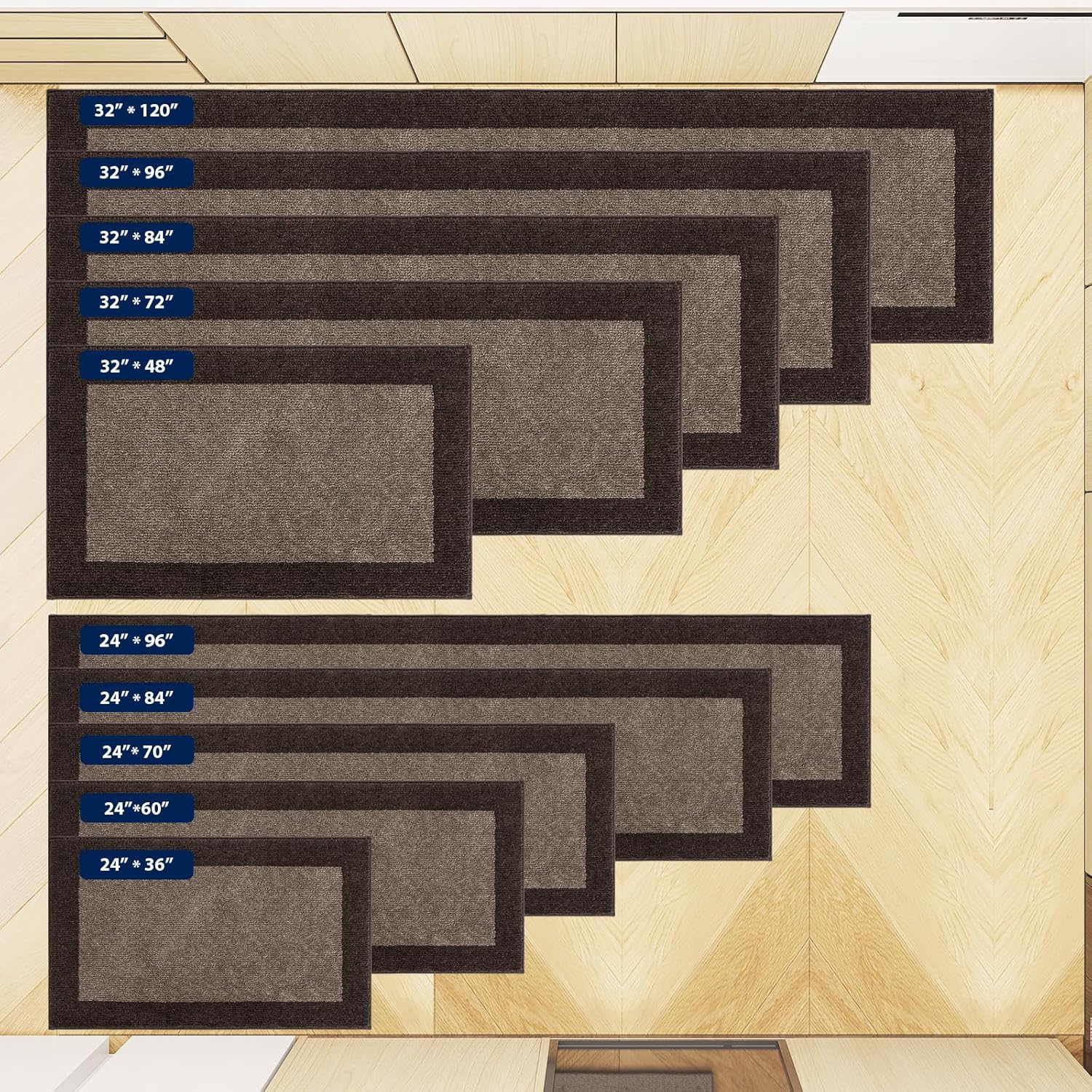 Machine Washable Kitchen Rug 32" x 84", Non Slip Kitchen Mat for Floor, Absorbent Entrance Runner Rug for Bedroom, Hallway, Bathroom, Door (Roll Packing)