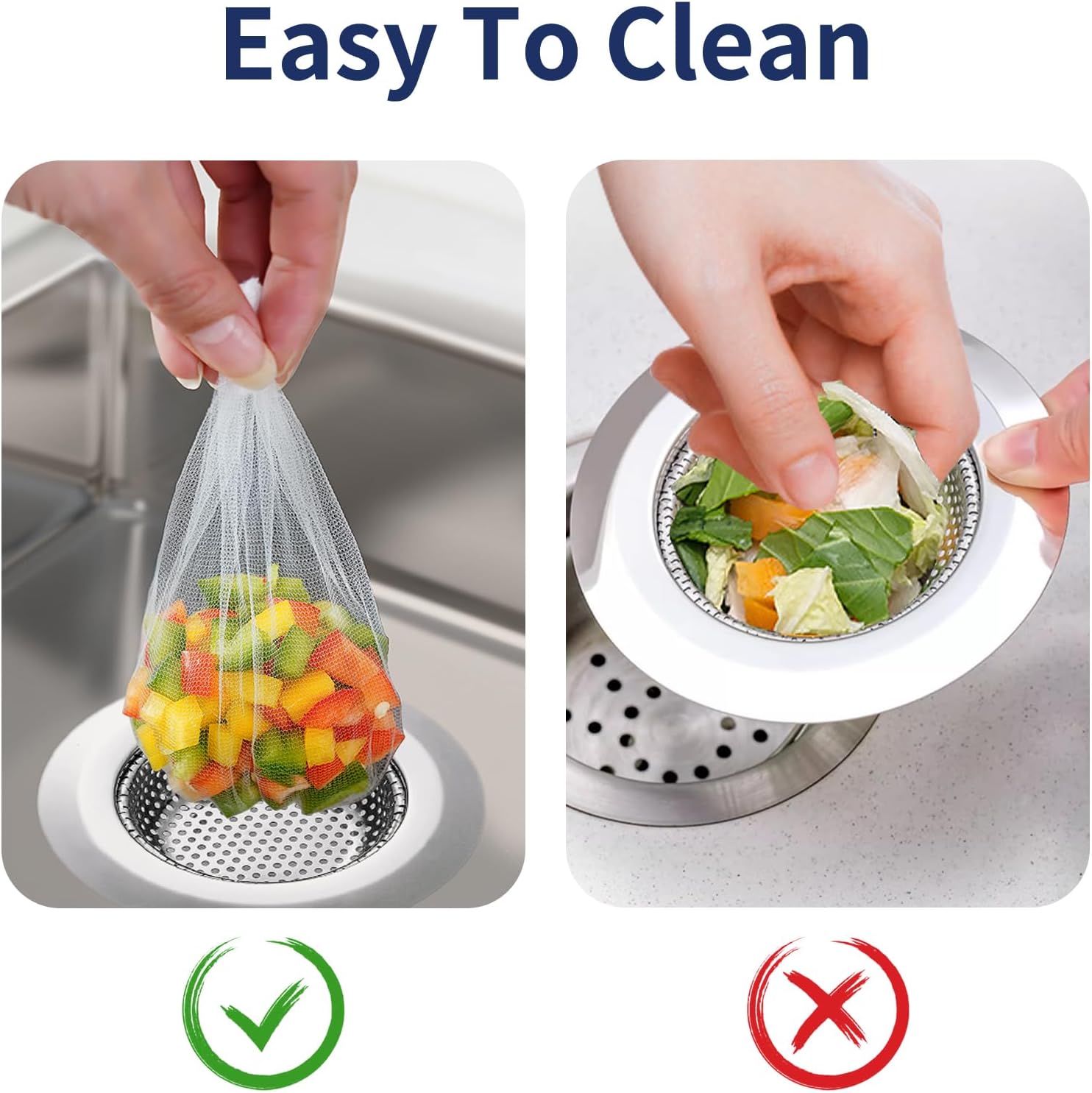 BATHRINS Kitchen Sink Drain Strainer Combination 100 Pieces of Sink Strainer Net Bags - Double Layered Design Makes It Easy for You to Clean The Sink Without Any Blockages