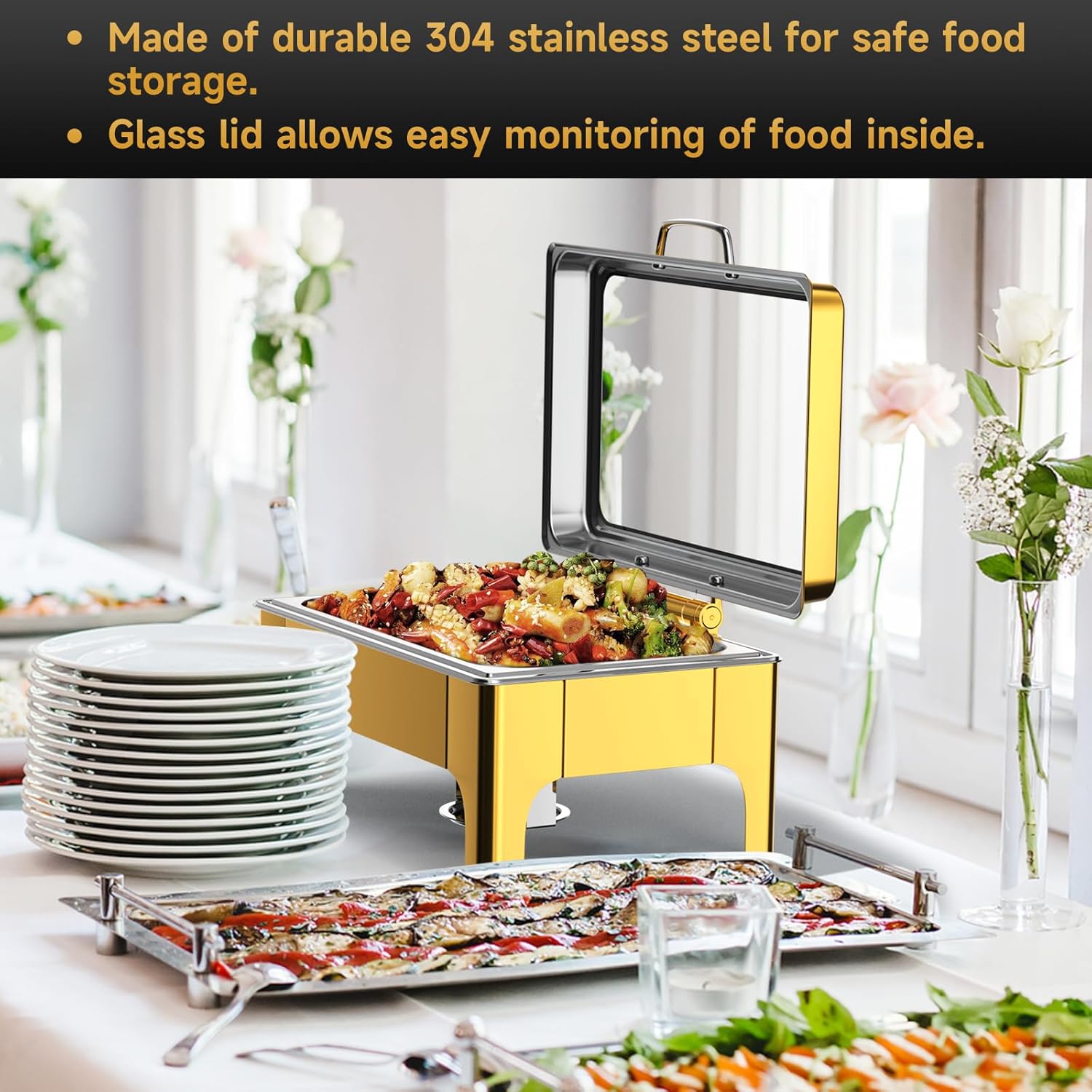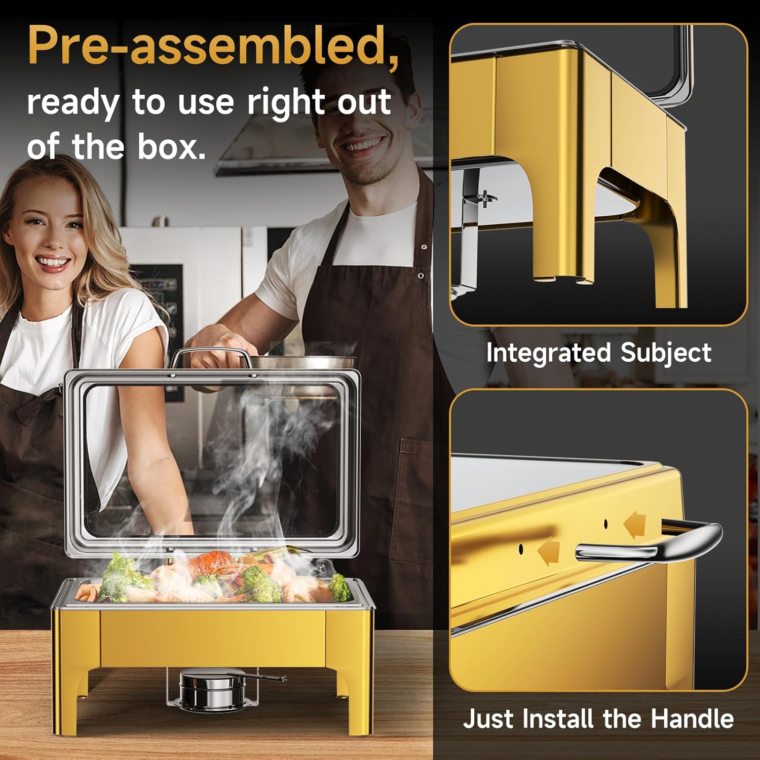 Chafing Dishes for Buffet, 9.5QT Square Stainless Steel Chafing Dish with Transparent Hydraulic Lid, 304 Food Pan, Buffet Warmer for Parties and Events (Golden)
