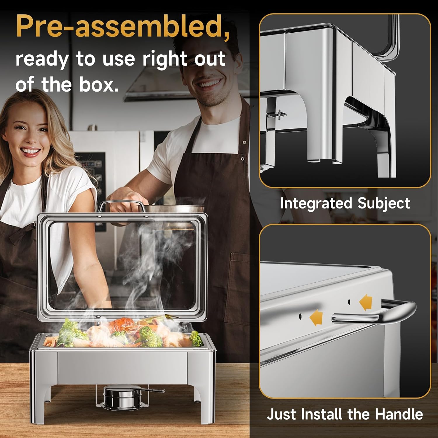 Chafing Dishes for Buffet, 9.5QT Square Stainless Steel Chafing Dish with Transparent Hydraulic Lid, 304 Food Pan, Buffet Warmer for Parties and Events (Silver)