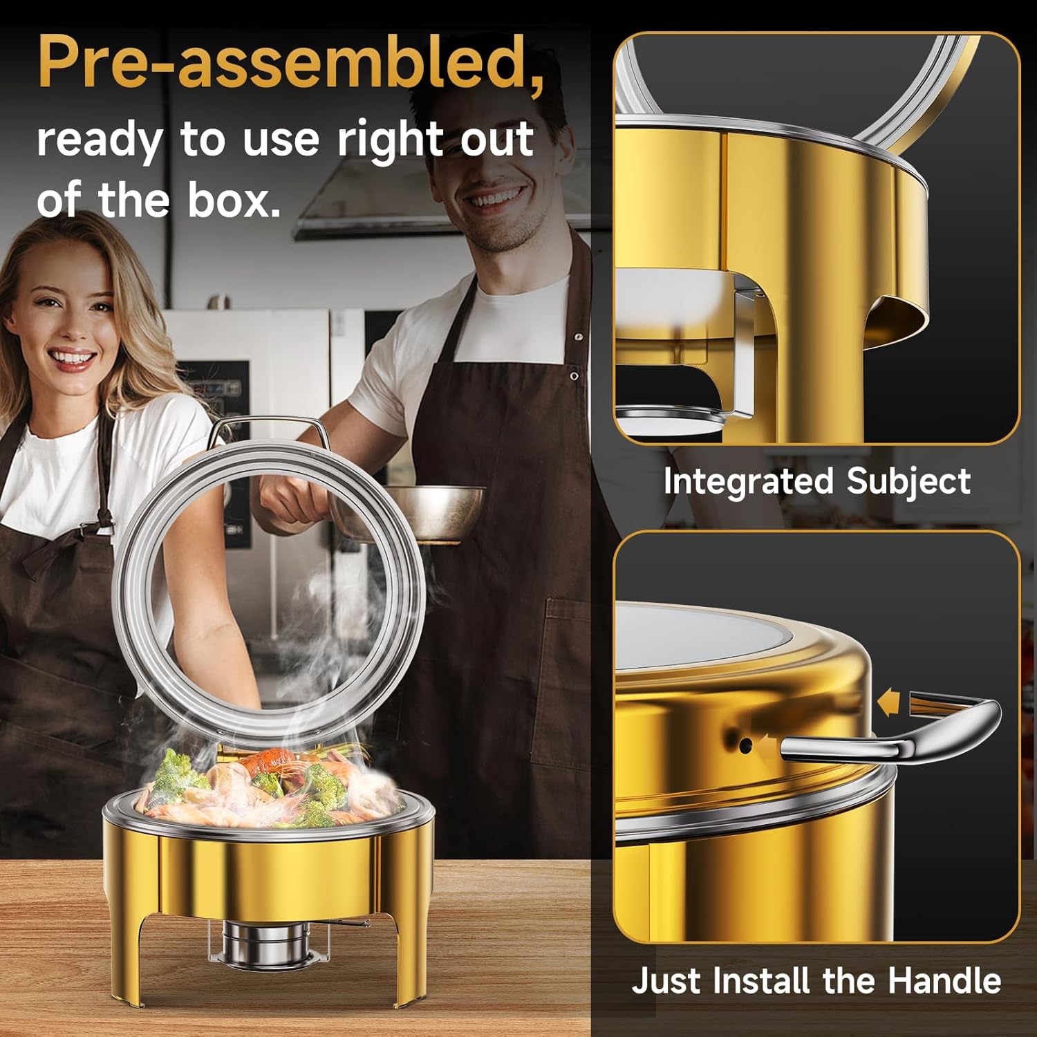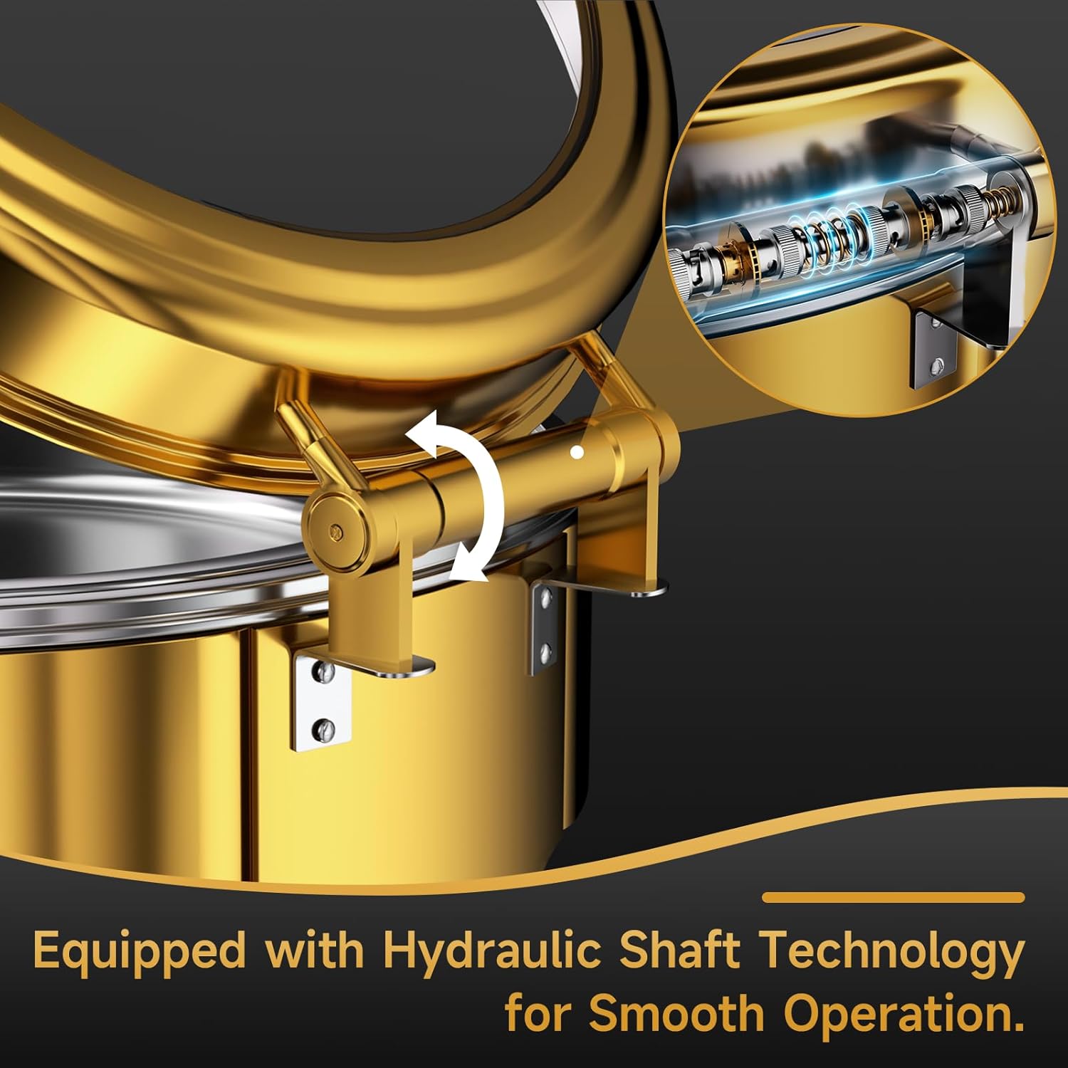 Chafing Dishes for Buffet, 6QT Round Stainless Steel Chafing Dish with Transparent Hydraulic Lid, 304 Food Pan, Buffet Warmer for Parties and Events (Golden)