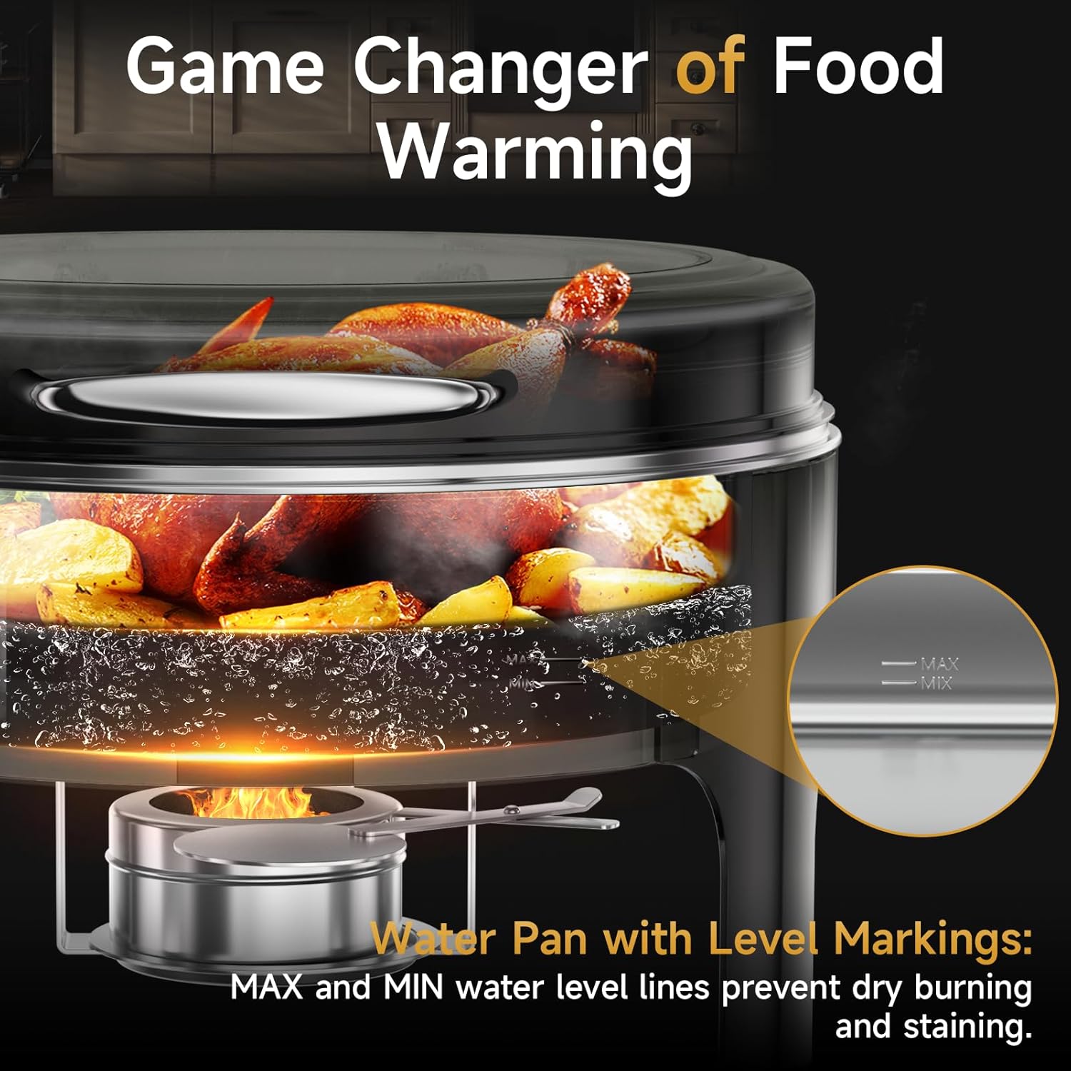- Elegant Round Design – 6QT Capacity for Versatile Use Great for soups, stews, or side dishes, this round chafing dish adds a touch of sophistication to your buffet line or catering display.