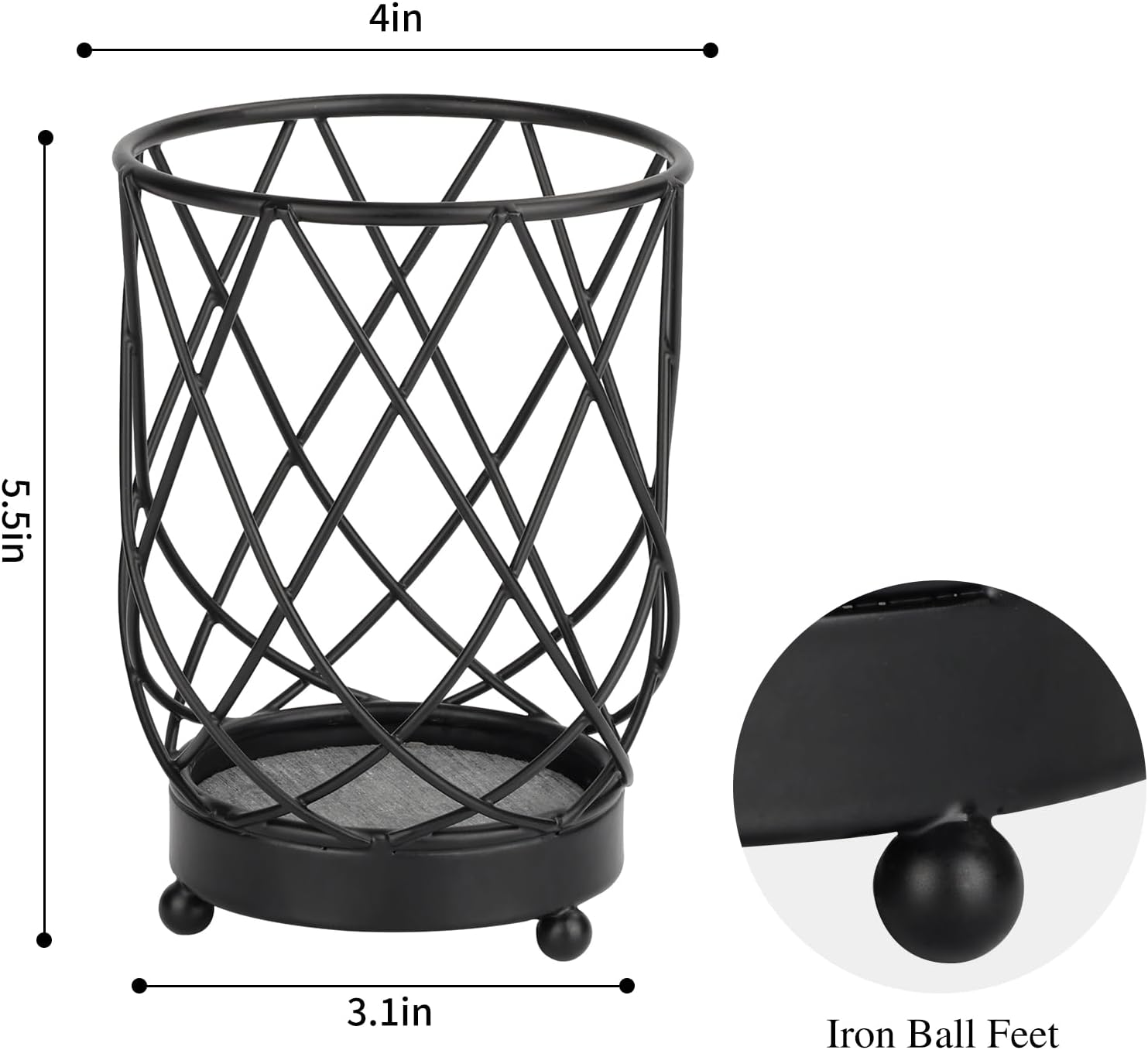 MACEVIA Utensil Holder for Kitchen Counter, Black Metal Organizer with Diatomaceous Earth Base, 4" x 3" x 5.5", Countertop Storage for Spoons,Spatulas and Cooking Utensils,Set of 2