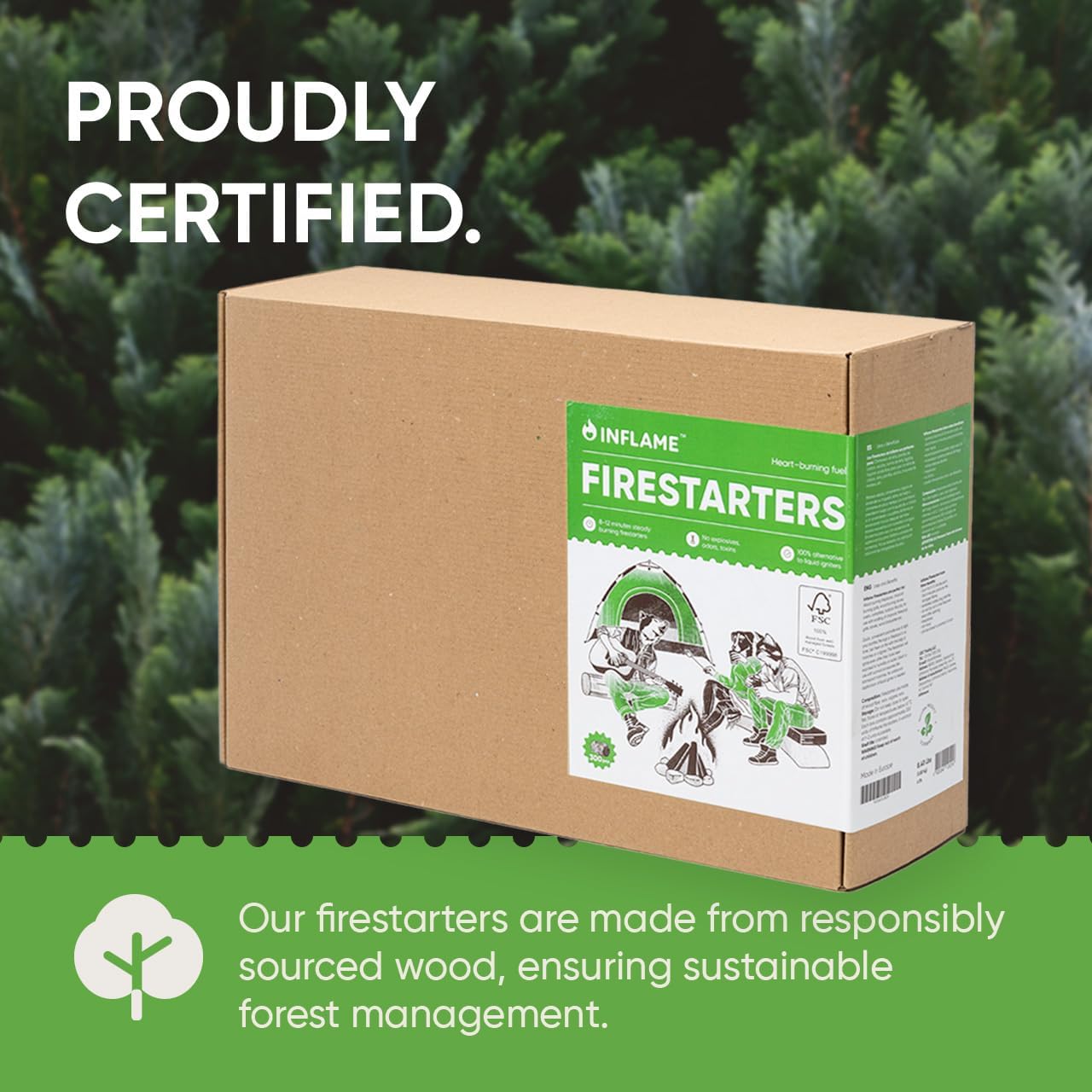Inflame Fire Starters 300 pcs Fire Starters for Campfires, Grill, BBQ, Fireplace, Woodstove - Charcoal Starter - Waterproof, Weather-Resistant - Natural Wood Fireplace Starters