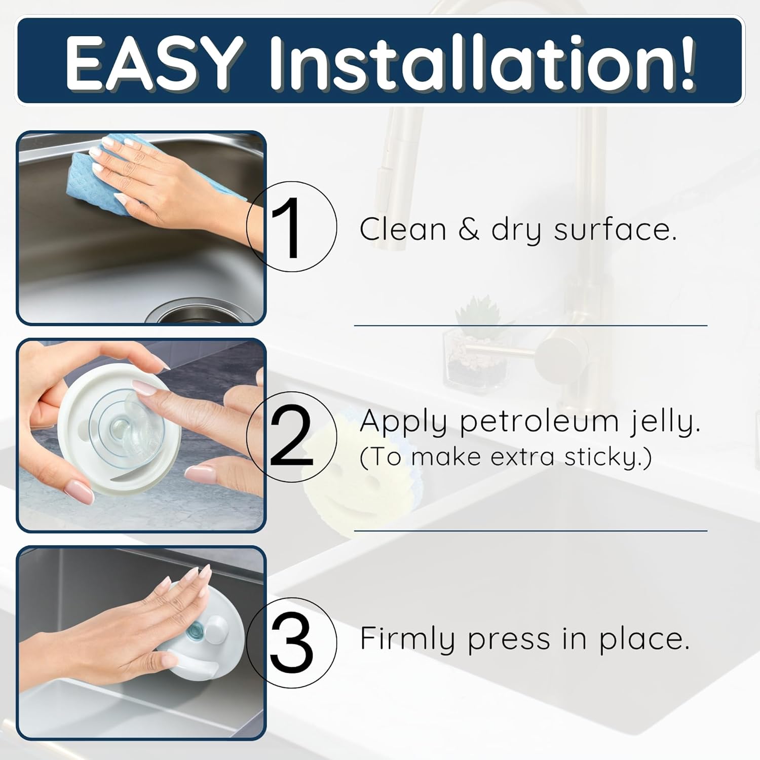 - Strong Suction Cup Installation: Easily attaches to smooth sink or backsplash surfaces for a reliable, long-lasting hold. (Pro Tip: A dab of petroleum jelly ensures an even tighter seal!).