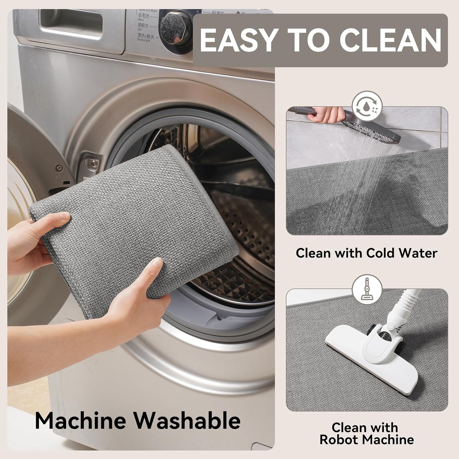 - Ultra Durable & Easy To Clean - Washable kitchen rugs have strong, well-made edges to ensure that they retain their shape over time and will not disintegrate and compress. Kitchen rugs are easy to clean and maintain, you can wash them with a vacuum cleaner or washing machine. The color will not fade or crack after washing. PLEASE NOTE: Machine wash cold with a neutral detergent (no chlorine or bleach) and tumble dry low on low.