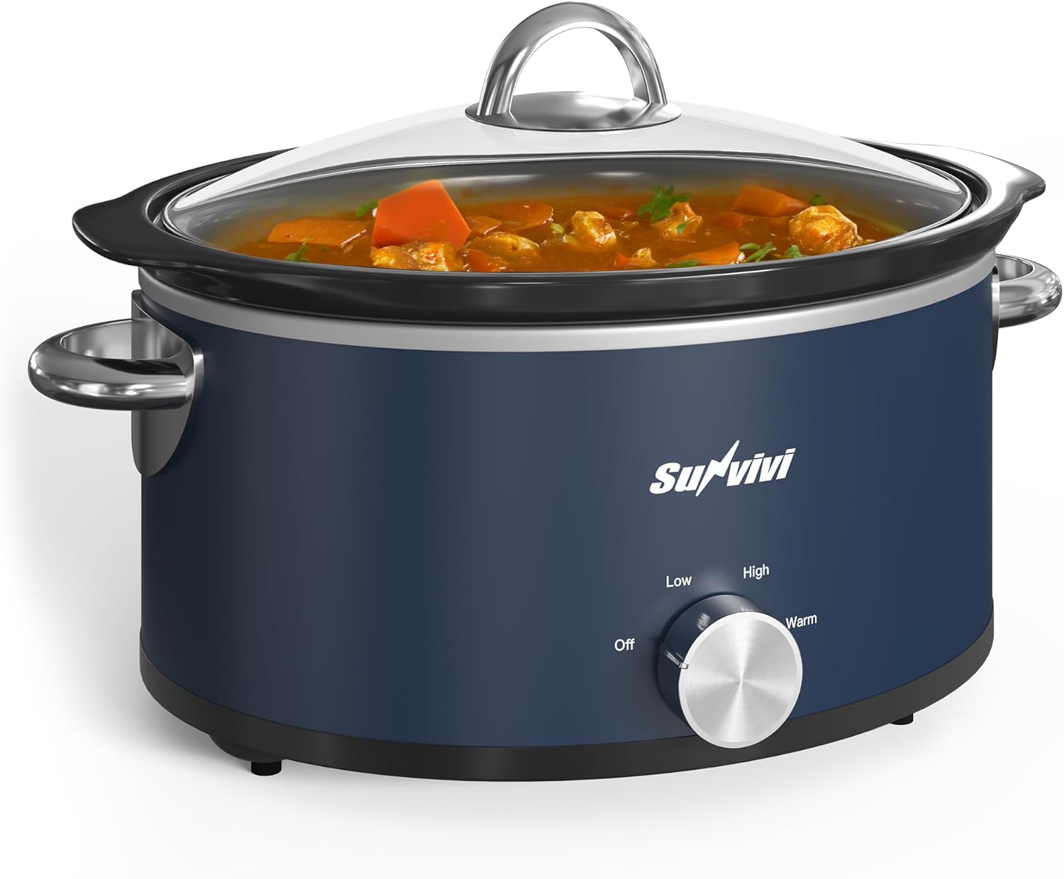 Sunvivi 3 Quart Slow Cooker & Mini Food Warmer with 3 Heating Settings, Removable Ceramic Pot, Dishwasher Safe Glass Lid, Stainless Steel, Blue