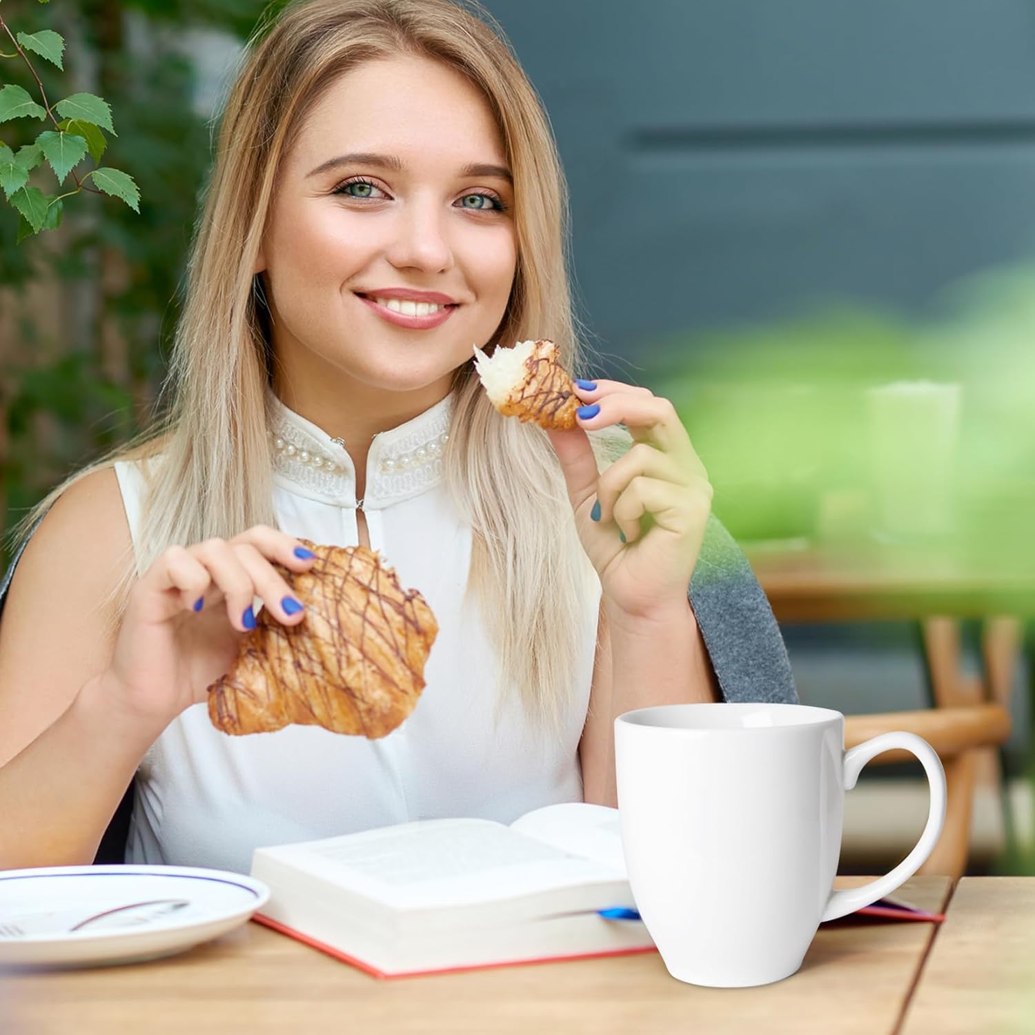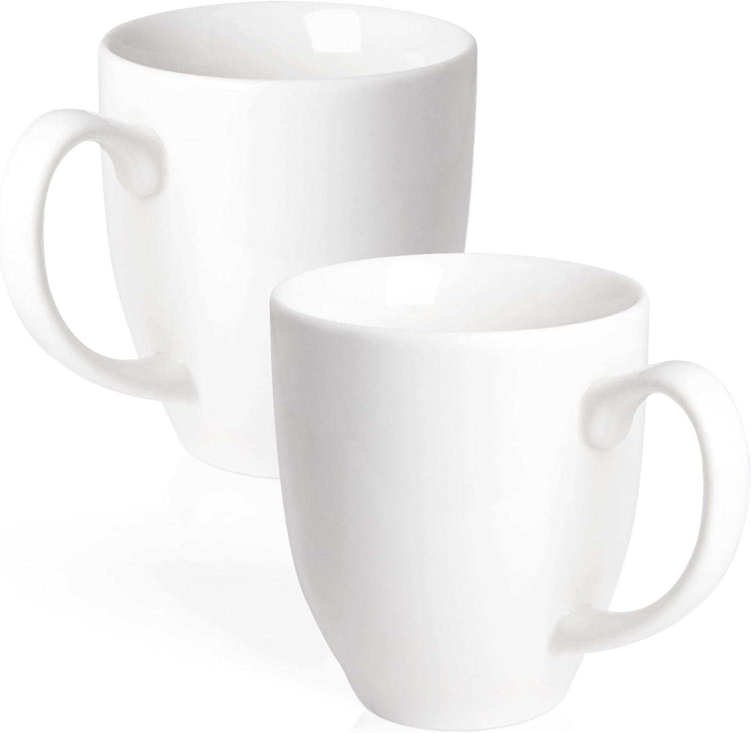 Set of 2 Durable 16 oz Coffee Cups, Large White Coffee Mugs with Ergonomic Handle, Ceramic Mugs Dishwasher & Microwave Safe, Ideal Tea Mugs for Home, Office, Gifts (Coffee, Tea, Hot Cocoa, Latte Cup)