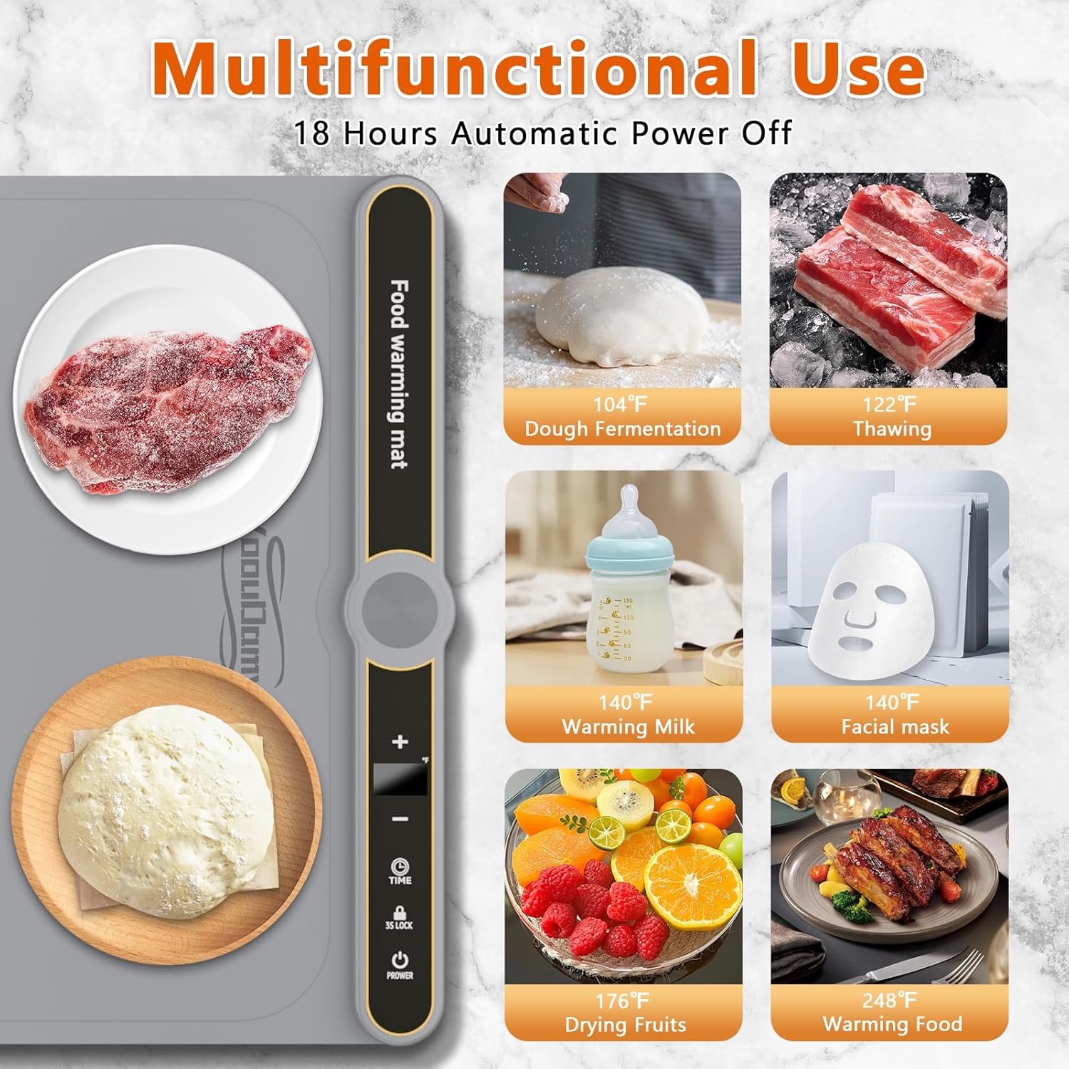 - 【Multi-Functional Kitchen Helper】The warming mat for food extra large is a multi-functional home helper for all kinds of heat-resistant materials, such as glass, stainless steel, ceramic, etc.; it not only keeps dishes warm during daily meals, but also helps to heat milk, thaw steak, ferment dough, etc., suitable for all seasons, can be used anytime, anywhere, keep dishes warm for family gatherings, parties, buffets, festivals, and other celebrations, always maintain the best taste