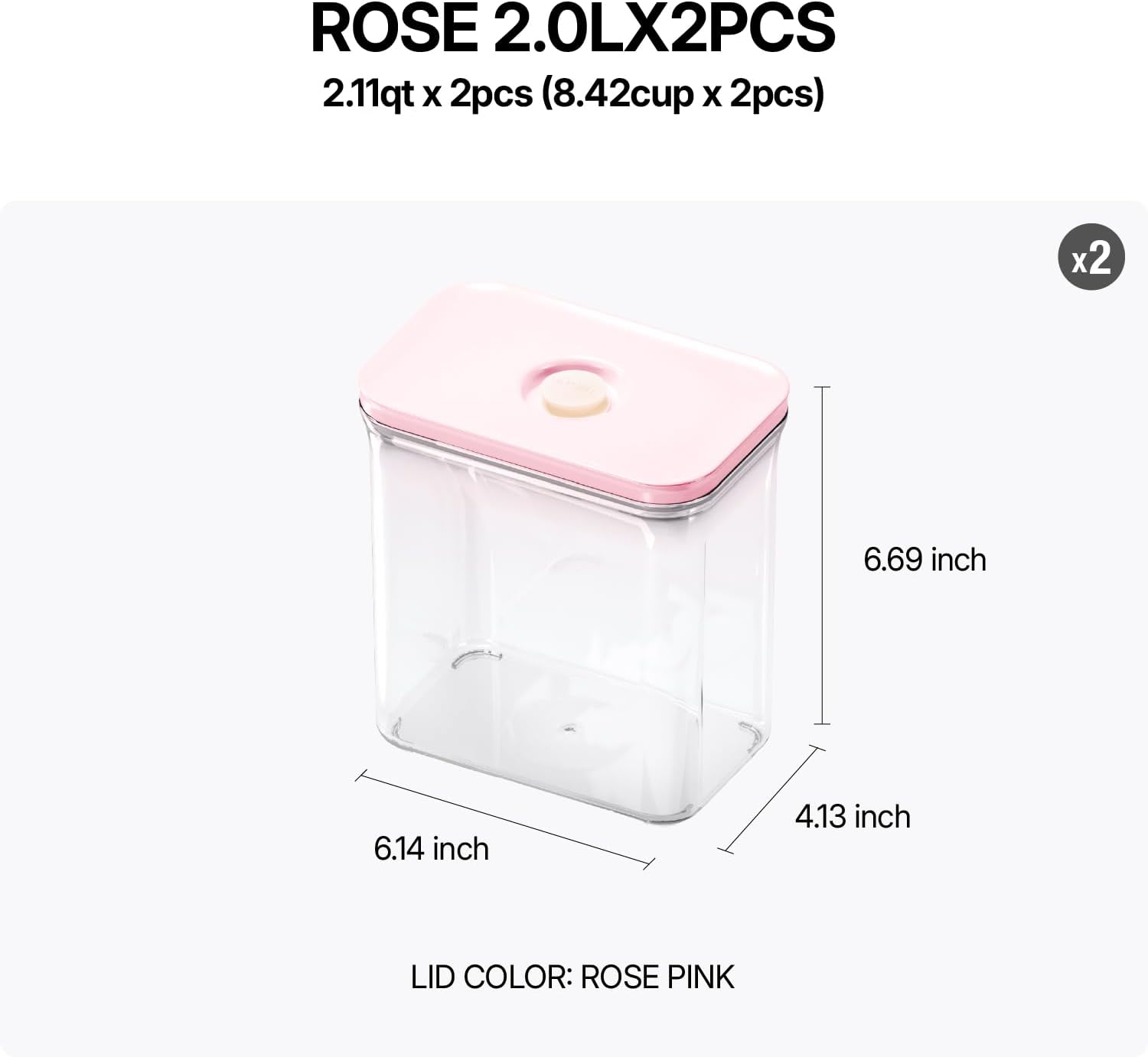 Premium Airtight Food Storage Containers ROSE 2.0L(2.11qt) 2P/SET, Patented Double Silicone Lining, 100% Leak Proof, BPA-FREE