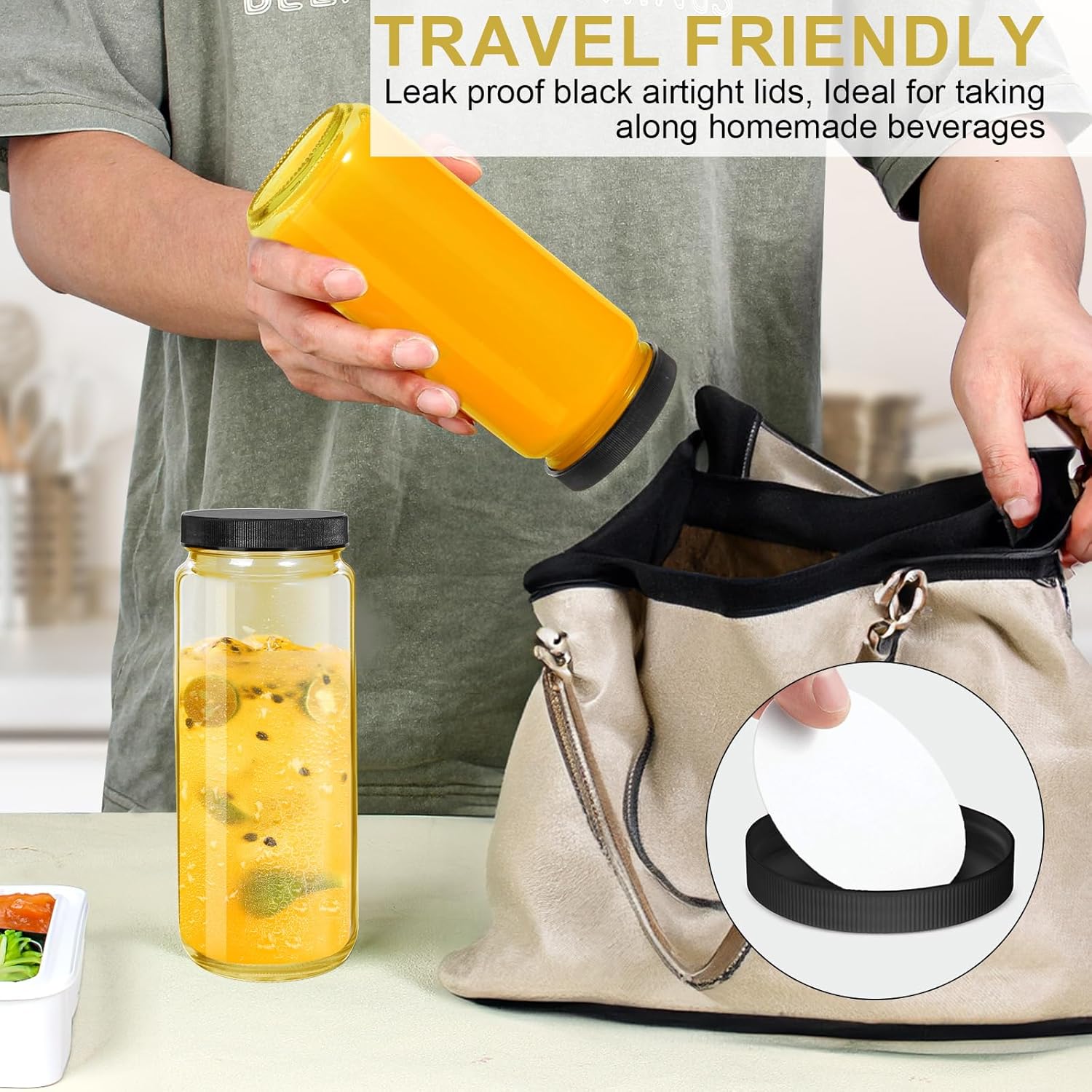 - Airtight and Leakproof Design:Each bottle comes with a secure lid,ensuring that your juices stay fresh and protected.The foam-lined lids create an airtight seal,making these bottles for juicing ideal for travel without worrying about spills.Enjoy your drinks worry-free,whether at home or on the move!