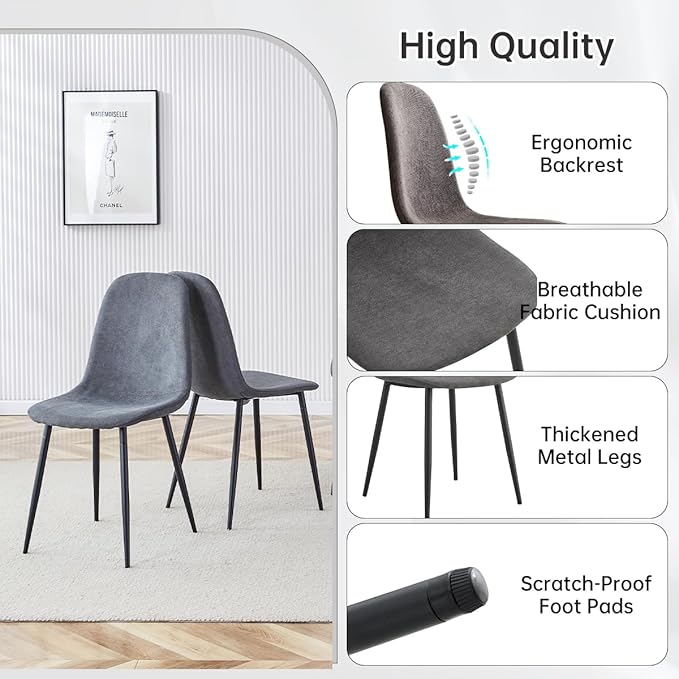 - Durable Breakfast Table Set for 4 : Thickened MDF tabletop, stable metal base with non-slip pads. fabric chairs, ergonomic backs, high-resilience foam for comfort and long-term use