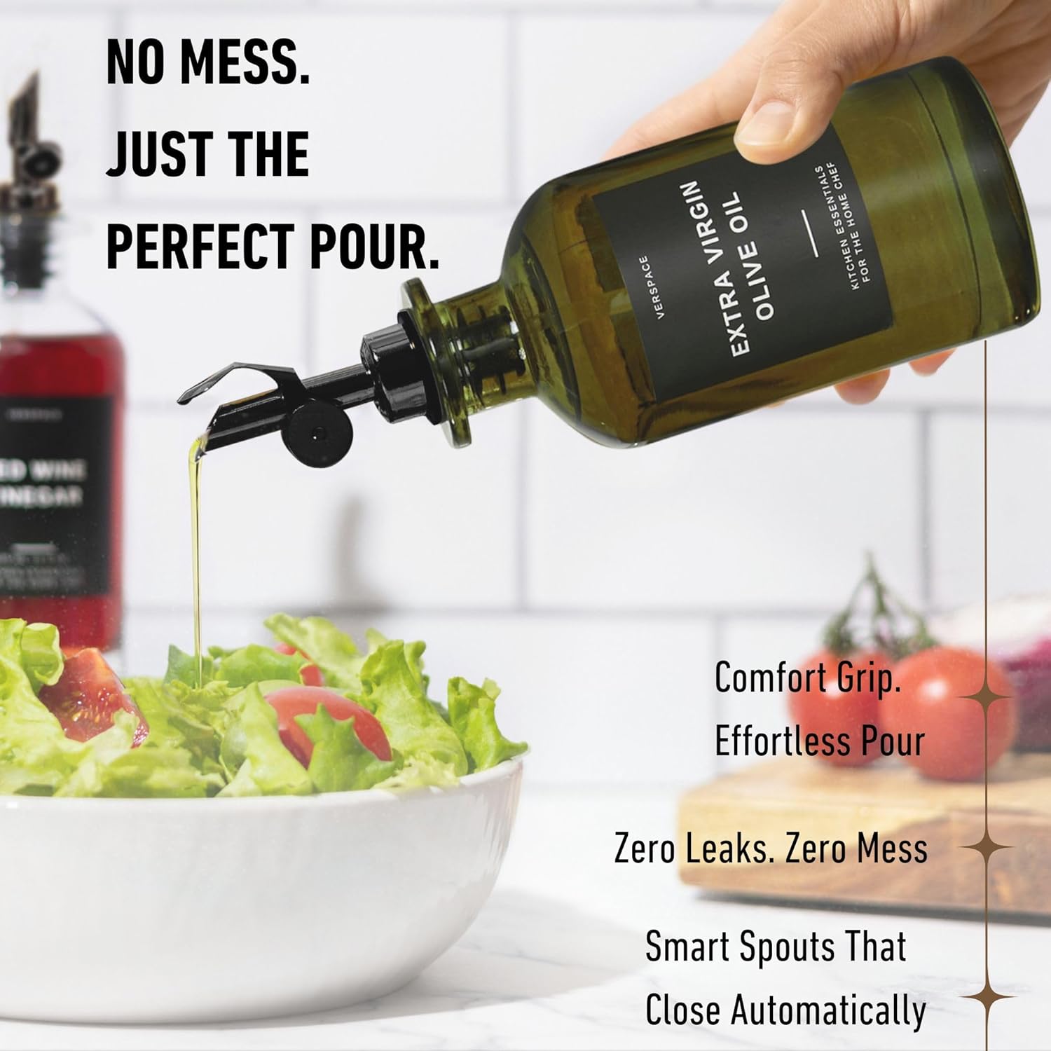- EASY TO USE, EASY TO CLEAN: From soy sauce to vanilla extract, this oil container pours smoothly and seals automatically. Hand wash to preserve the spouts and bottle’s beauty, and enjoy effortless clean-up every time.