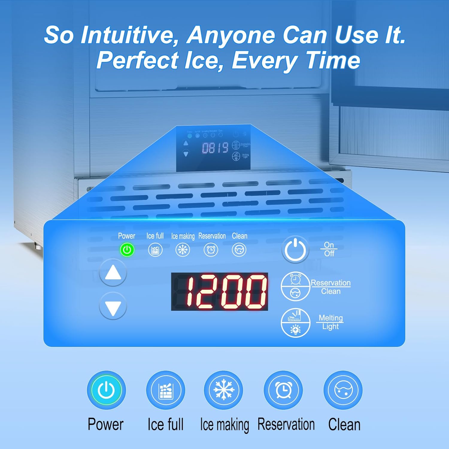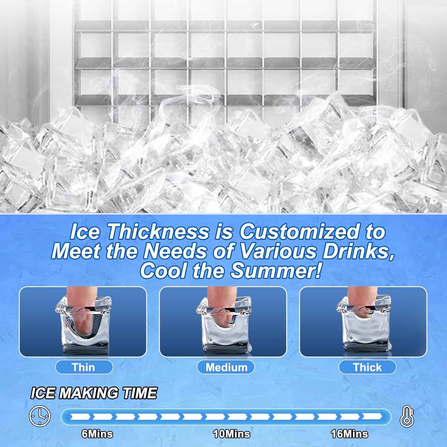 - Smart Ice Customization "Choose from 3 ice sizes (thin/medium/thick) or block/nugget ice—perfect for cocktails, seafood displays, medical use, or blended drinks. Switch textures with one touch!"