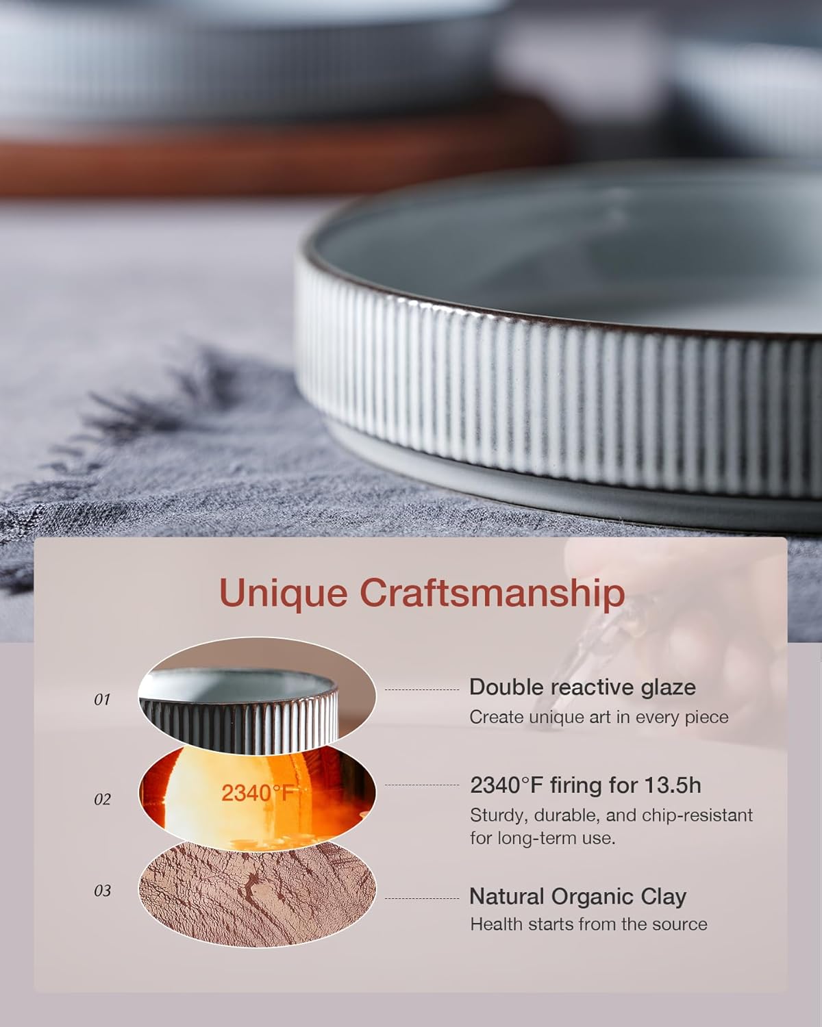 - HANDCRAFTED ELEGANCE: Each of our plate bowls is a testament to the skill and creativity of our artisans, handcrafted and glazed with a DOUBLE REACTIVE GLAZE that brings out a distinct, dreamy color. The hues may differ on your screen, showcasing the one-of-a-kind beauty of our artisanal process