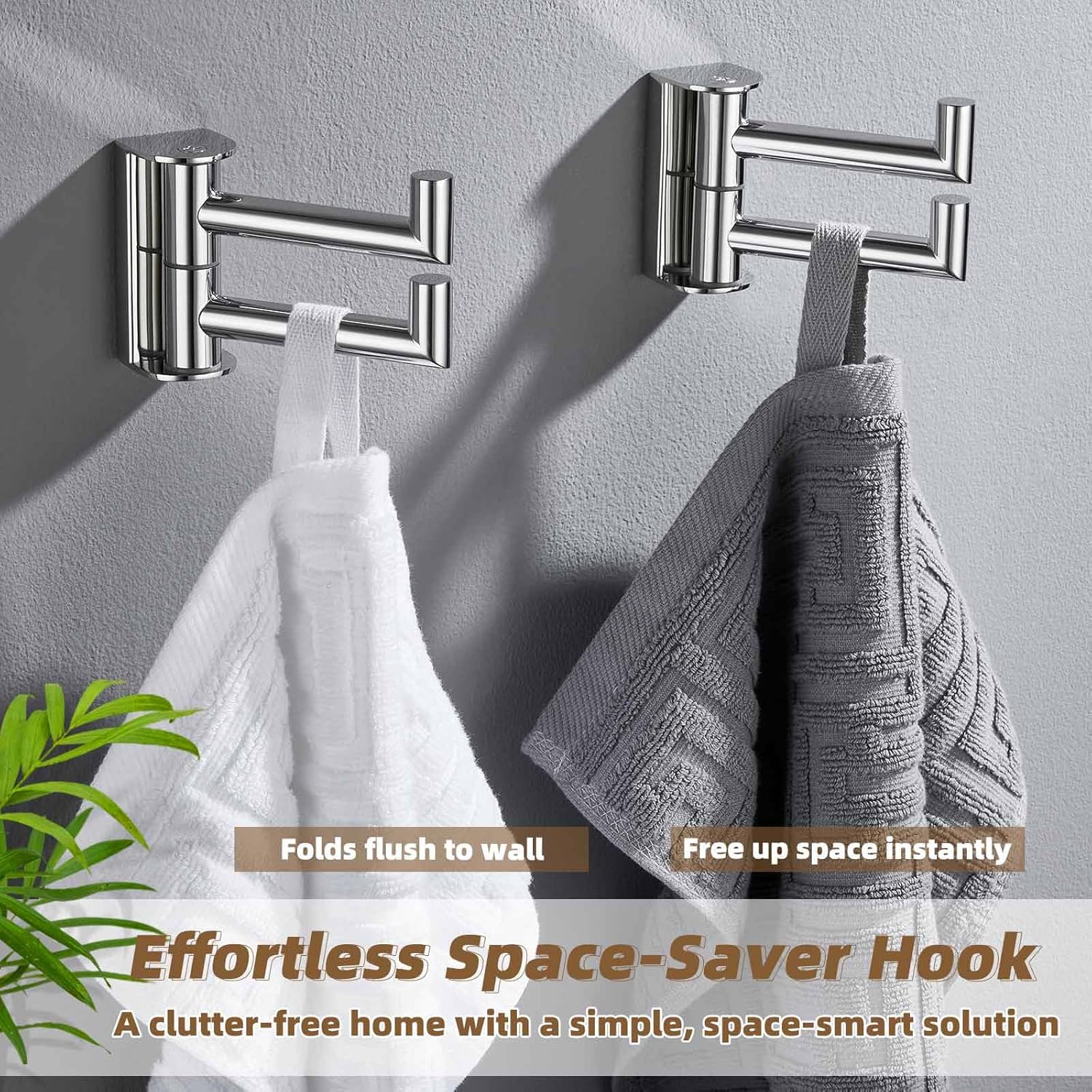 APLusee Swivel Towel Hook Polished Chrome 2 Pack, 304 Stainless Steel Bathroom Robe Hook Towel Holder, Folding Wall Hook Wall Mounted
