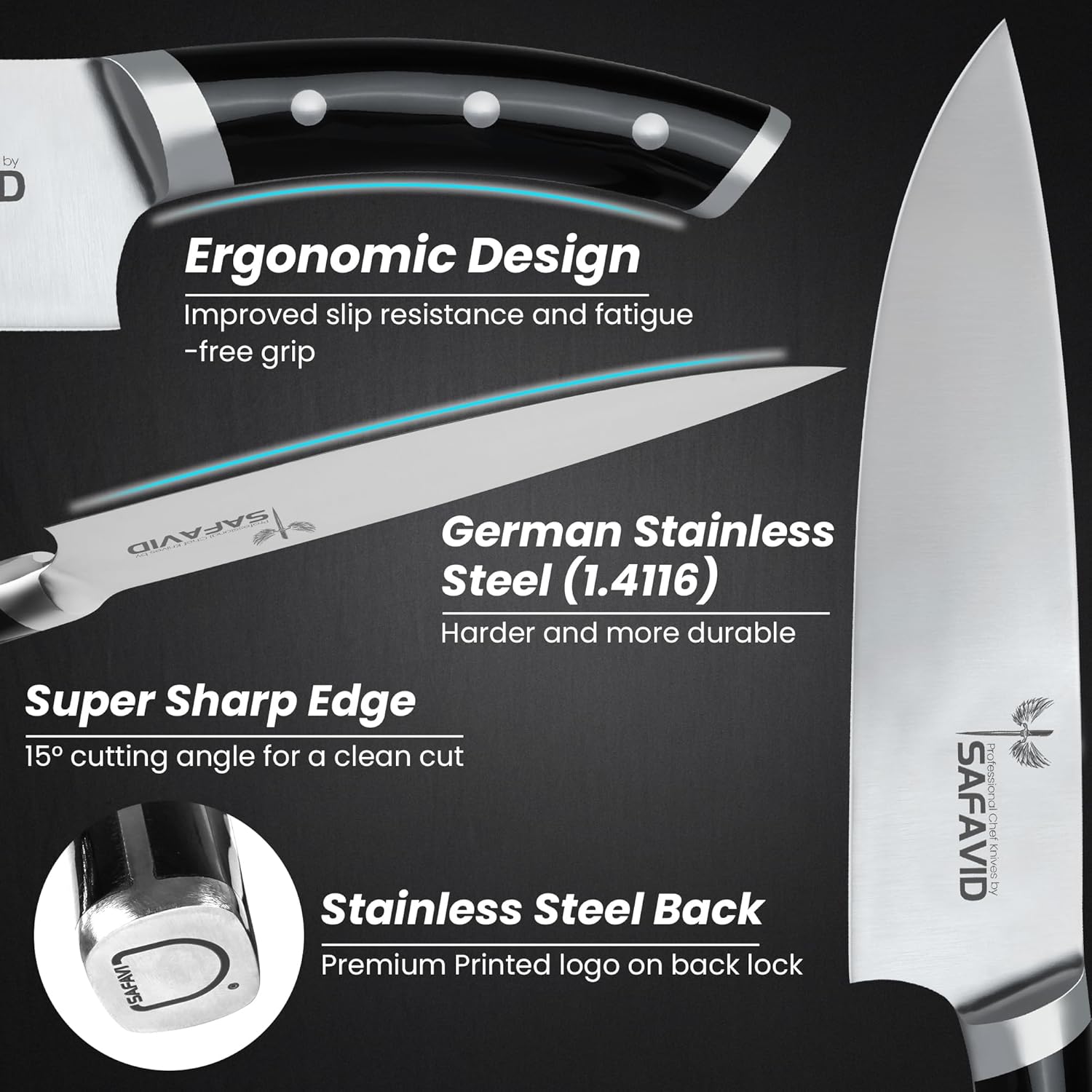 - German tech Durable Blade – Crafted from German high-carbon stainless steel, this premium quality knife ensures longevity, maintaining a sharp edge for years, making it the best chef knife for chefs and home cooks alike.