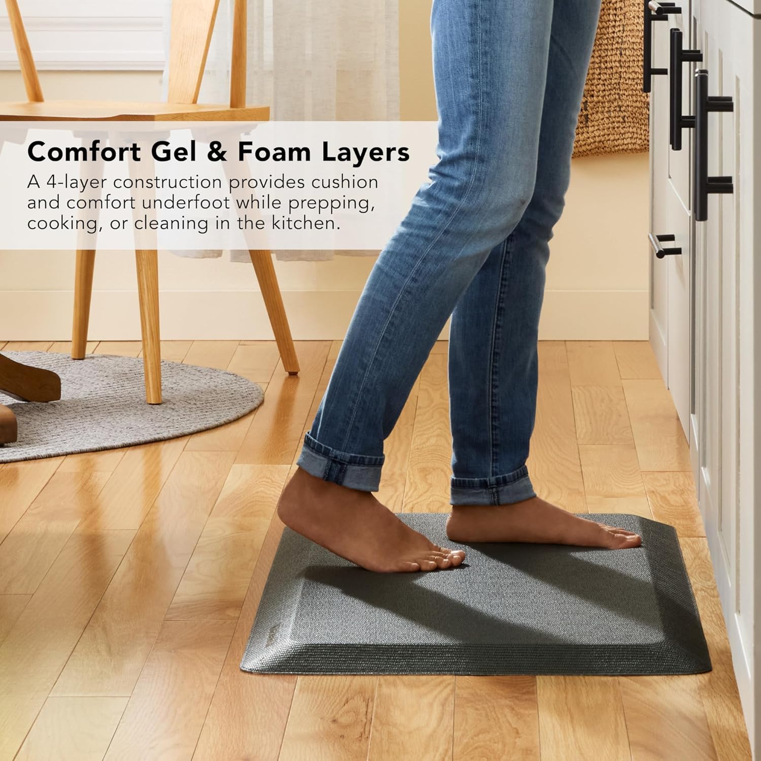 - COMFORT MAT: a 4-layer construction provides ultimate comfort underfoot while prepping, cooking, or cleaning in the kitchen