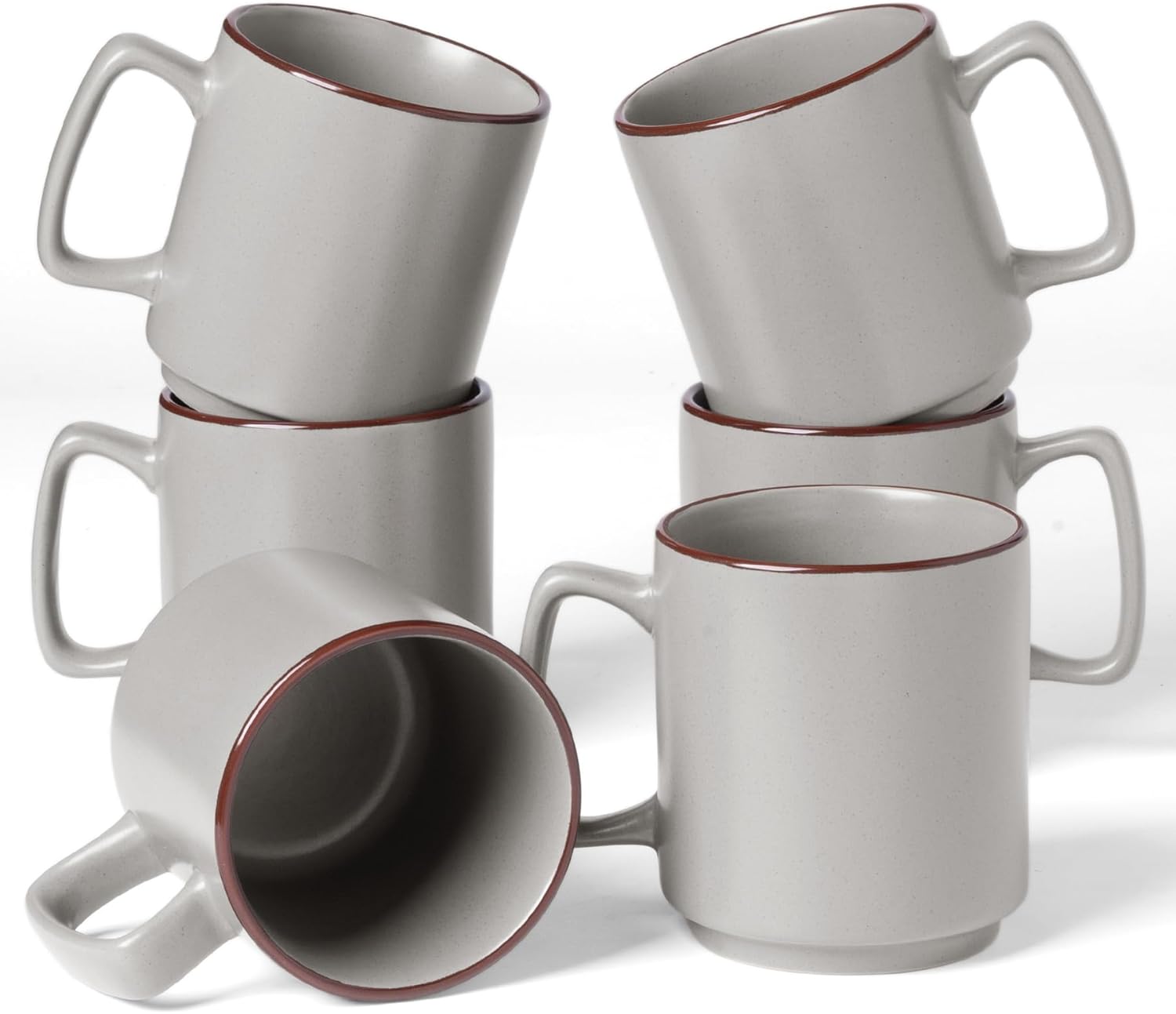 famiware Coffee Mugs Set of 6, Nebula 14oz Coffee Mugs, Ceramic Cup Set with Handle for Latte, Tea, Milk, Cappuccino, Cocoa, Light Gray