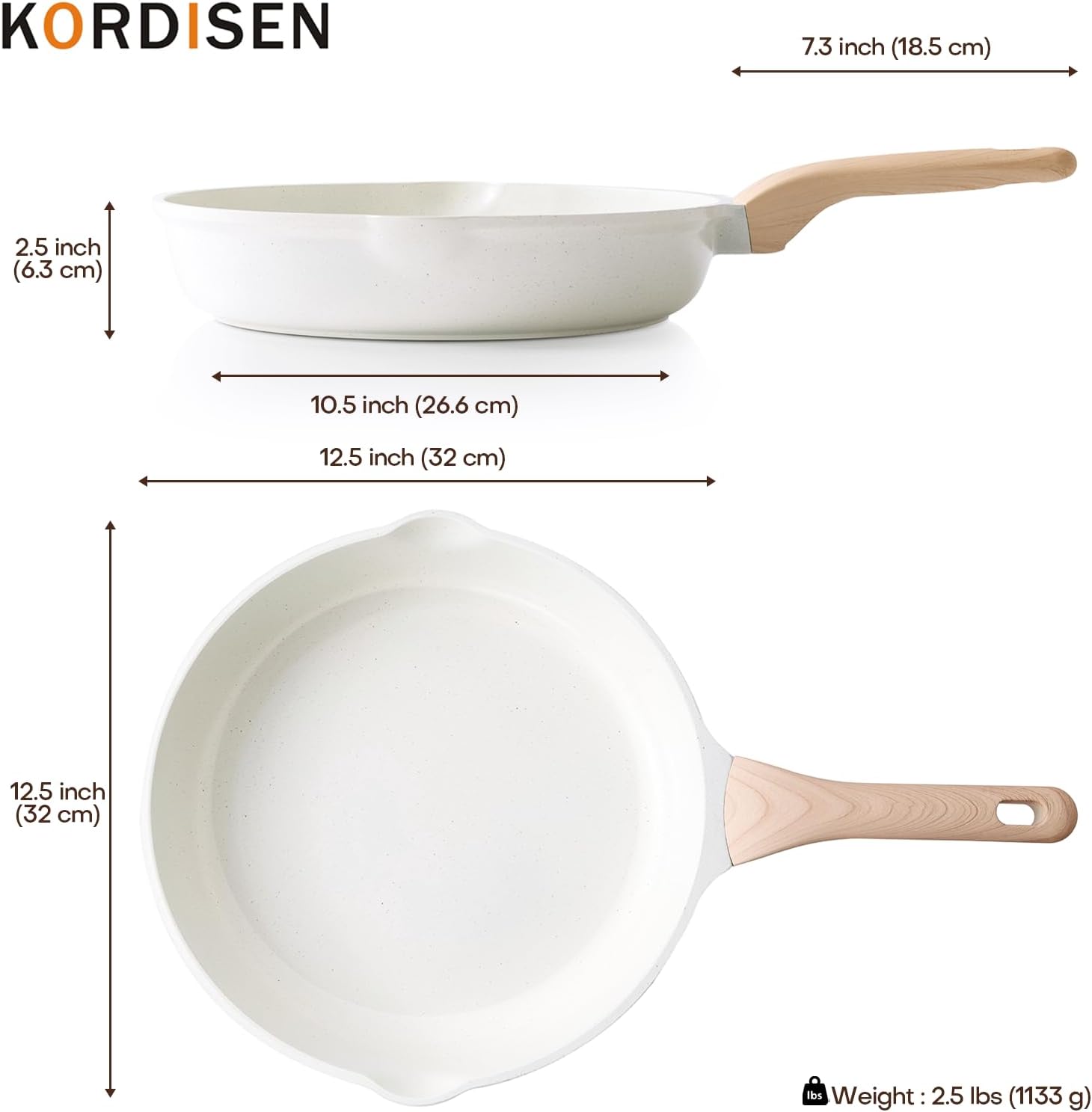 Nonstick Ceramic Frying Pan, 12.5 Inch Ceramic Large Skillet, Healthy Non Toxic Cooking Pan, Stay-Cool Handle, Induction Compatible, PFOA & PFAS Free, White
