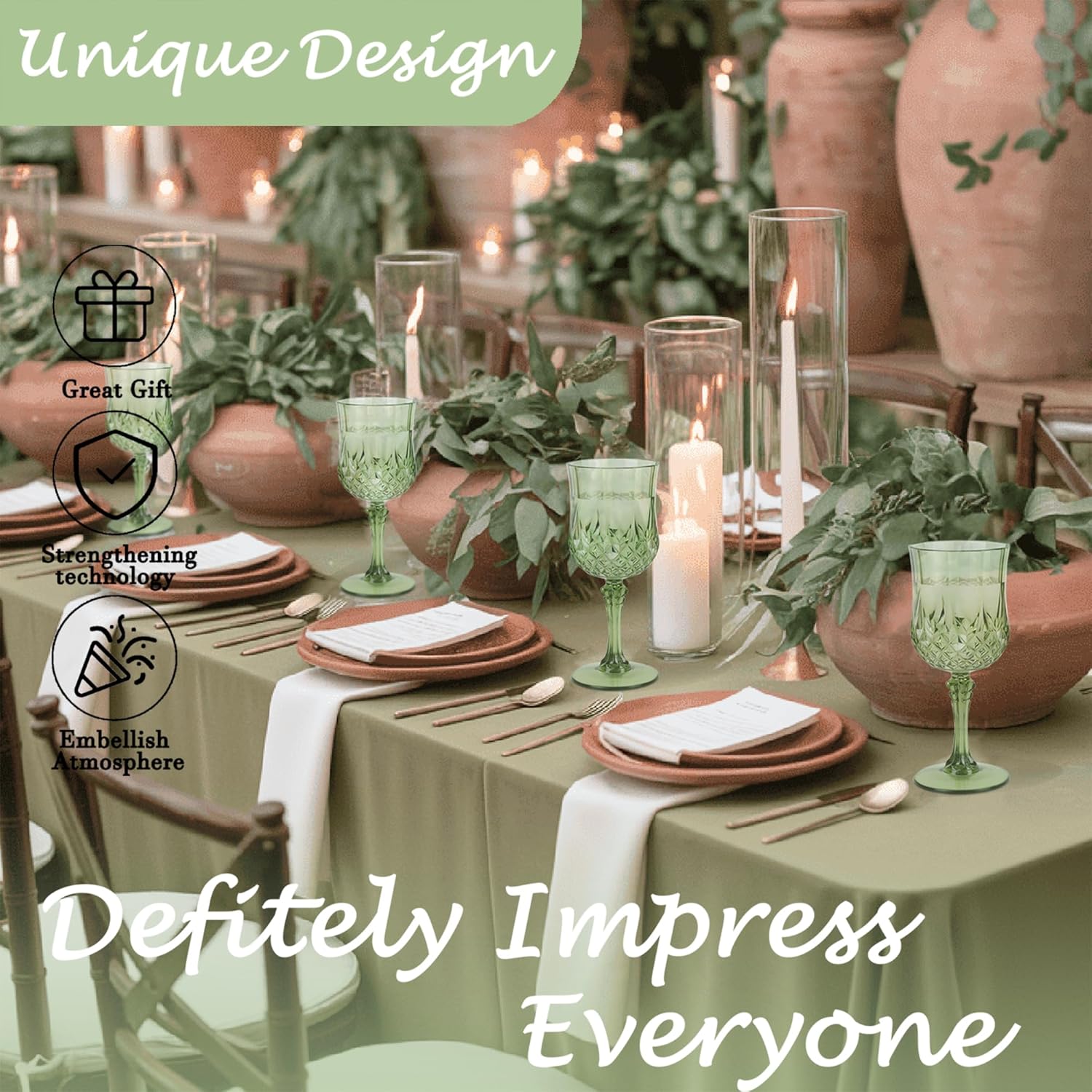 - 🍷🍷🍷【Product Description】 This set includes 24 retro-style light green party plastic wine glasses, providing ample quantity to meet your daily use and replacement needs. The elegant and sophisticated design makes your wedding reception unique