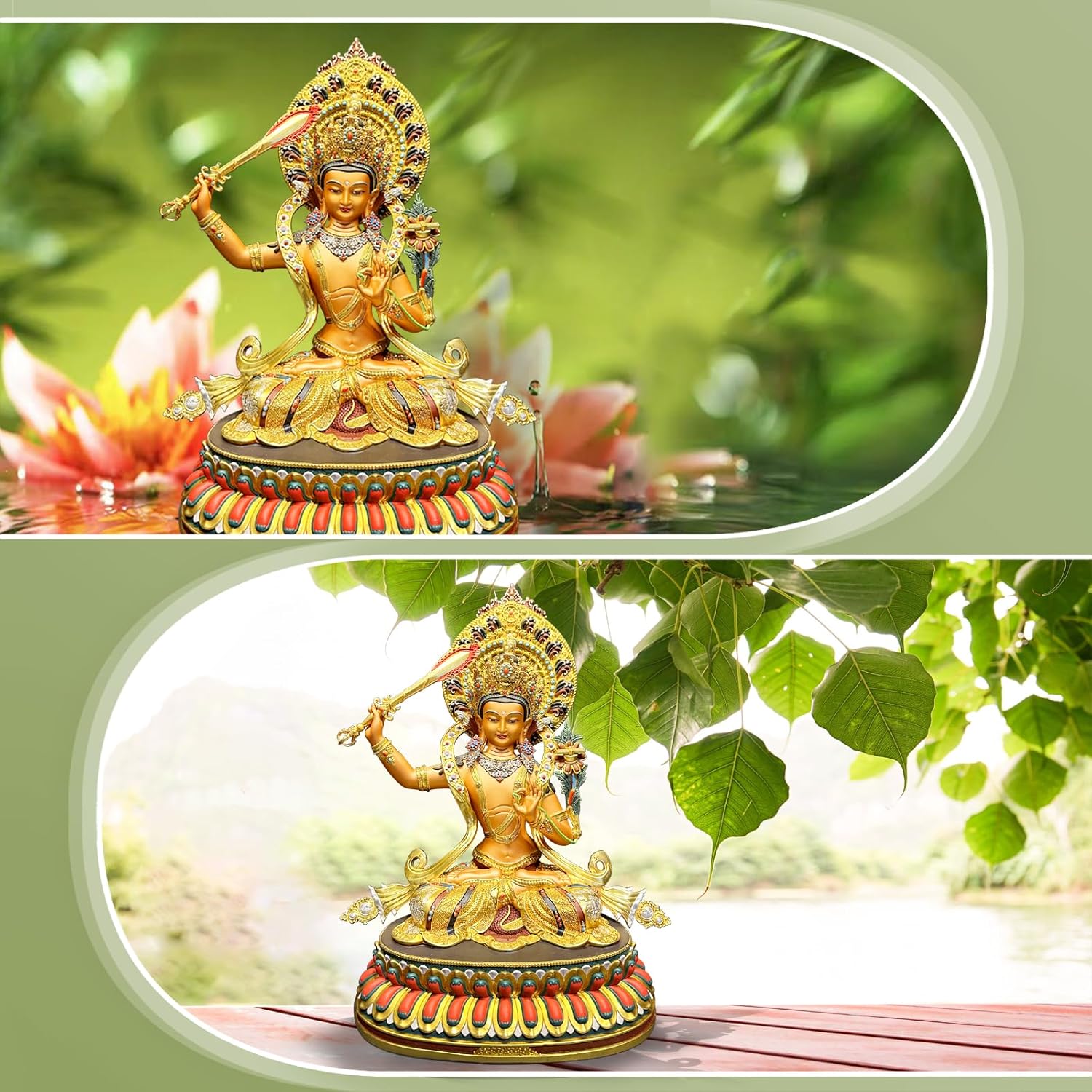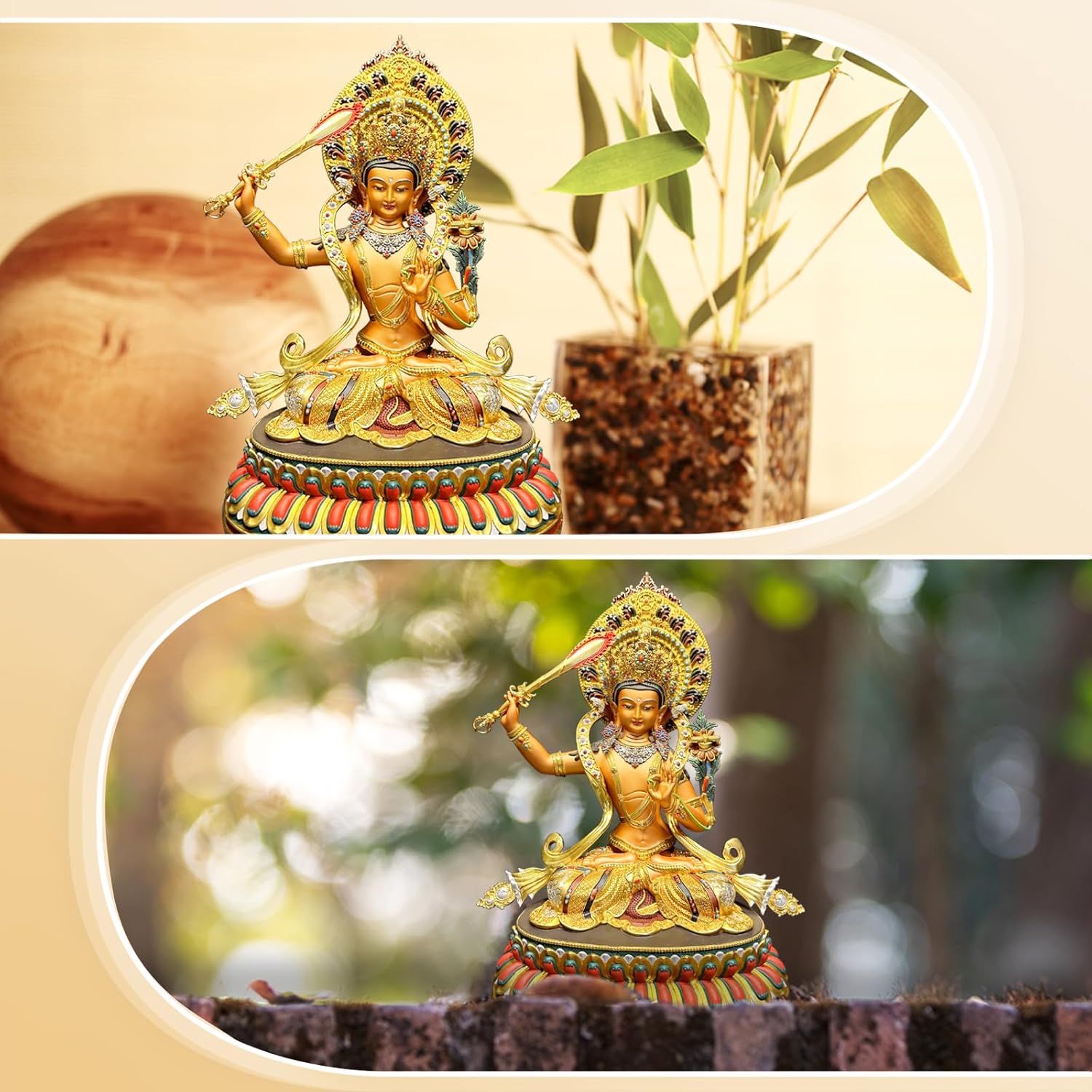 Buddha Statue Indoor, Buda Sculpture for Home Decor, Hand-Painted Colored Buddhist Budda, Nepalese Craft Handmade Tibetan Buddhism Meditation Copper (Manjushri, 14.17")