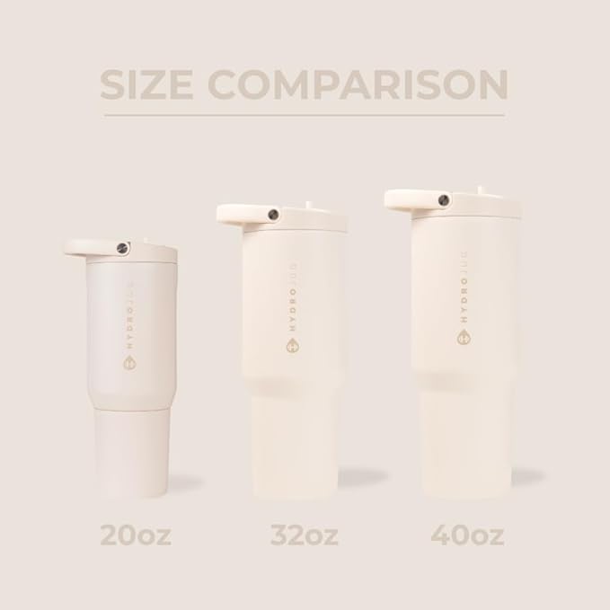 HydroJug Sport - Stainless Steel Tumbler with Straw, Vacuum Insulated, 20oz Leakproof Water Bottle, Ergonomic Design, Reusable, Dishwasher Safe, Rubber Base, Durable for Gym or Outdoors, Cream