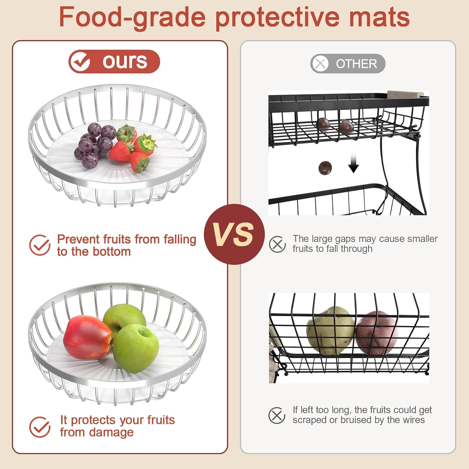 - Protects Fruit: Features a food-grade protective liner to prevent small fruits from falling and avoid pressure marks. Perfect fruit holder.