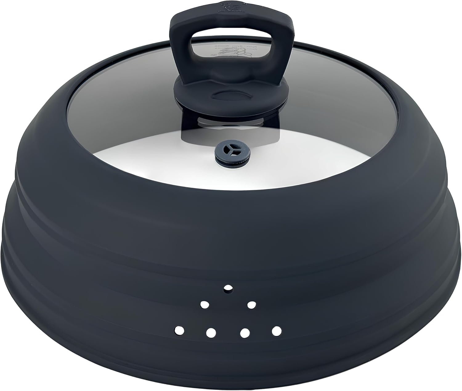 Microwave Splatter Cover Collapsible Silicone & Tempered Glass 11.8 Inch Microwave Cover for Food Splatter Guard with Steam Vents Dishwasher Safe Fits Bowls, Plates & Pots (Gray)