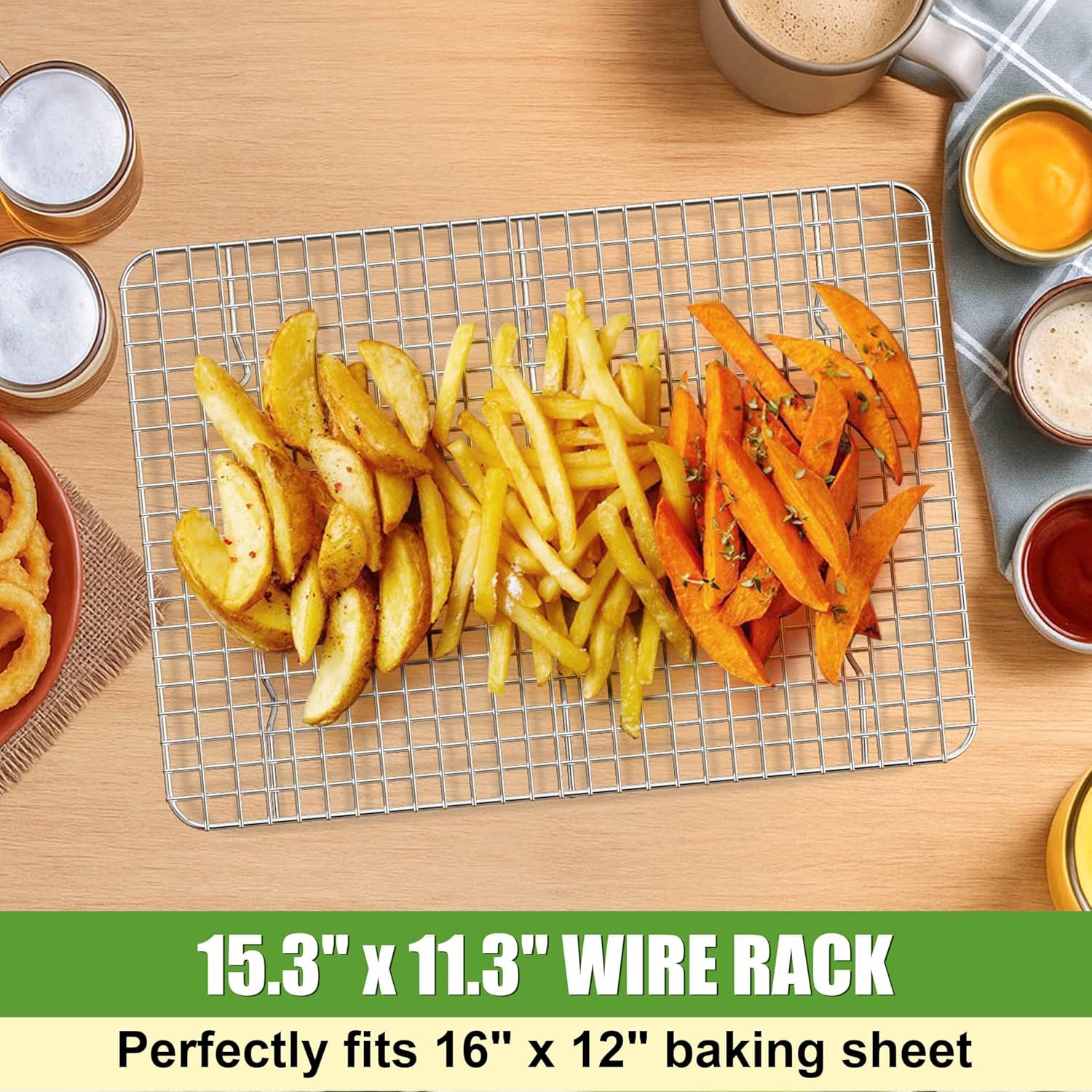 - Pure stainless steel, baking racks are made of quality food grade stainless steel without any coating, no harmful chemicals flake into your food during high heat, rust and warp resistance enables durability for long lasting, easy to clean and dishwasher safe to save your time