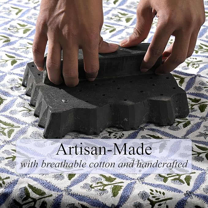 Ridhi Light Steel Blue Hand Block Print Cotton Rectangle Tablecloth 120 x 60 inch-Reusable Table Cover Decorative Everyday Use for Dining Room, Farmhouse, Thanksgiving, Christmas Wedding, Fall